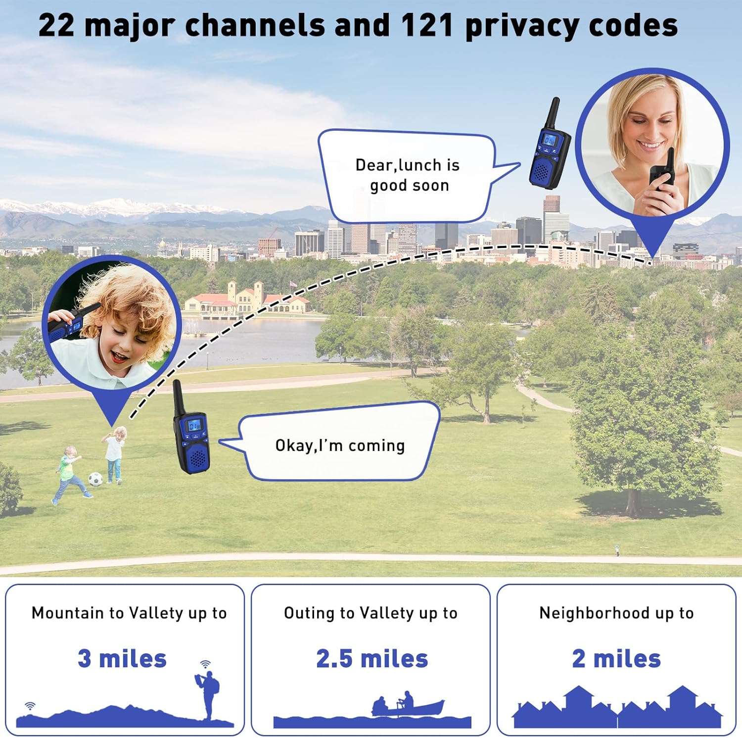 - SECURITY & PRIVACY:Two way intercom long range is compatible with any radio. It has 22 preset channels, 121 privacy codes (38 CTCSS codes/83 DCS codes) and offers a wide range of frequency usage (up to 2178 combinations to help block other conversations).