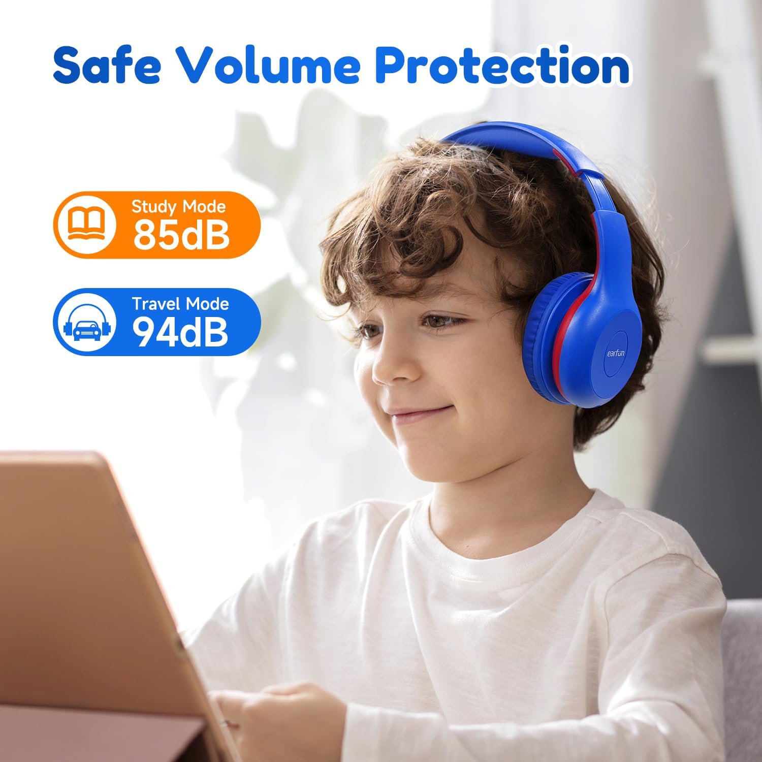 EarFun K2 Kids Bluetooth Headphones, Kids Headphones with Volume Limited, 40H Playtime, Built-in Mic, Stereo Sound, Foldable Over-Ear Headphone for School/Travel/iPad/Tablet, Blue