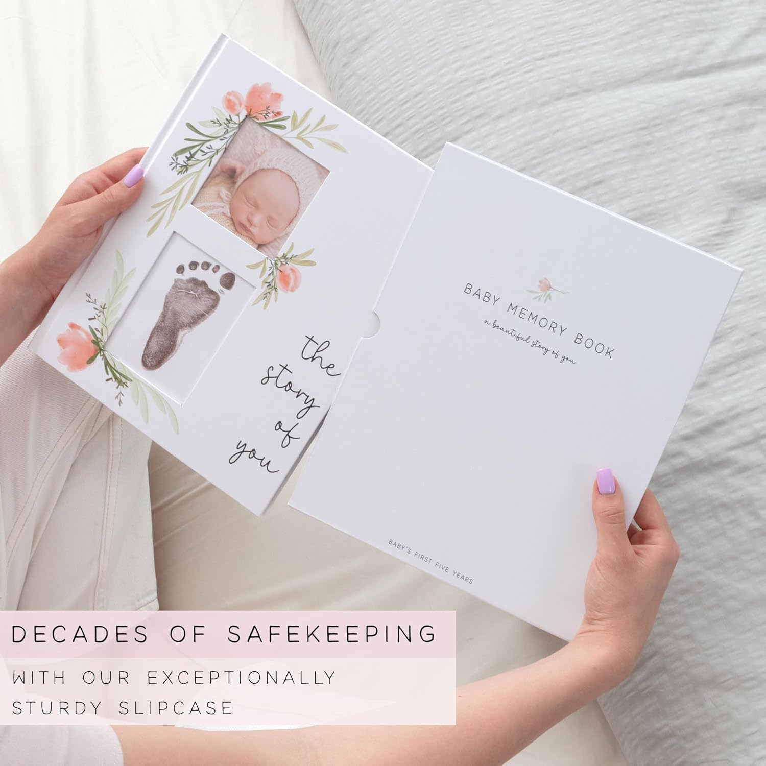 Baby Memory Book for the Modern Minimalist - Simple Baby Book for Girl - First Years Journal - Monthly Milestone Keepsake Record Book - Pregnancy Gift for Baby Shower (Pink)