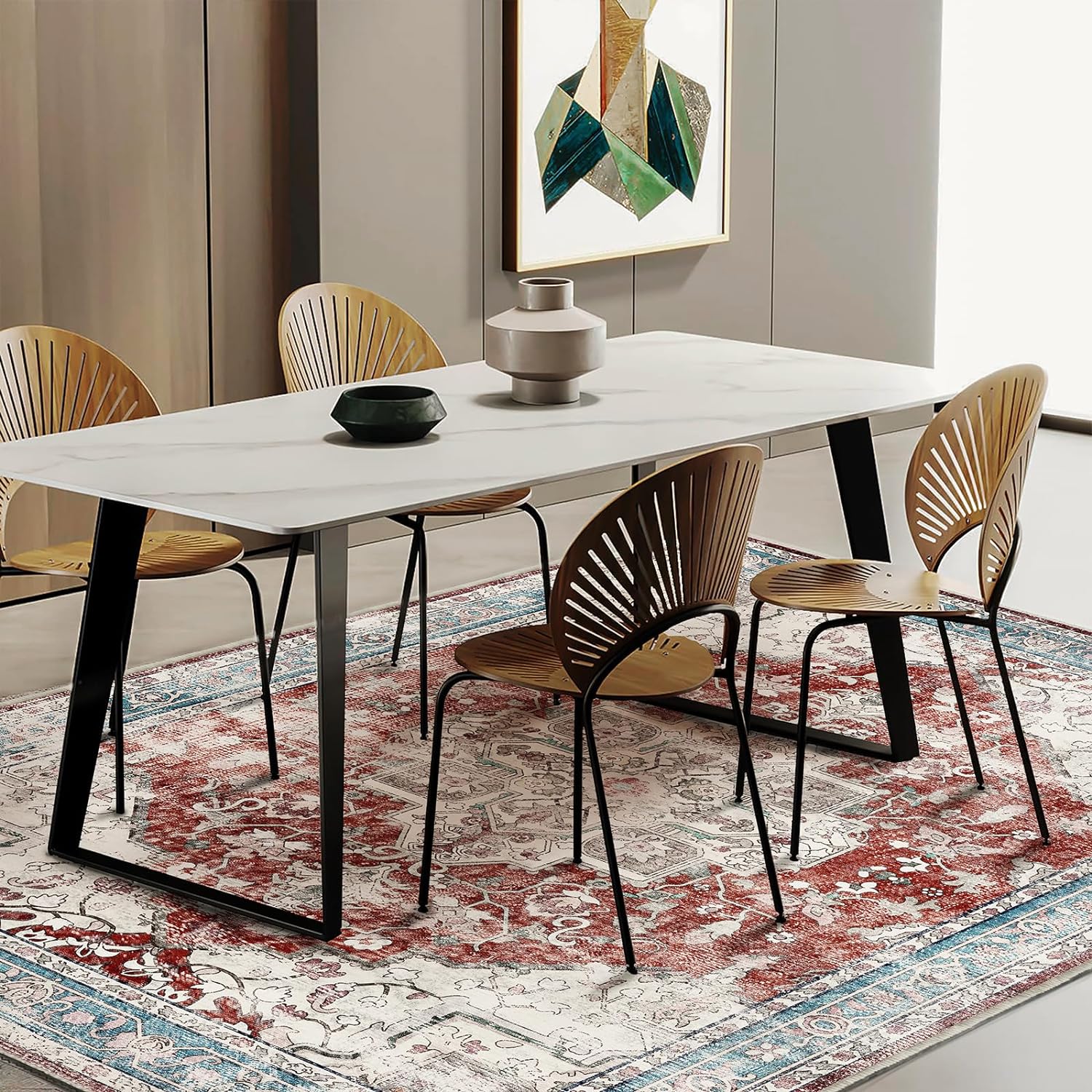 - Ultra-thin Safe: This ultra-thin Moroccan rug can be easily placed in entryways and under furniture, and won't get stuck on doors and become a tripping hazard. The sweeping robot can move freely to clean the carpet.This indoor rug can be used in many occasions, such as entry, living room, bedroom, dining room and more