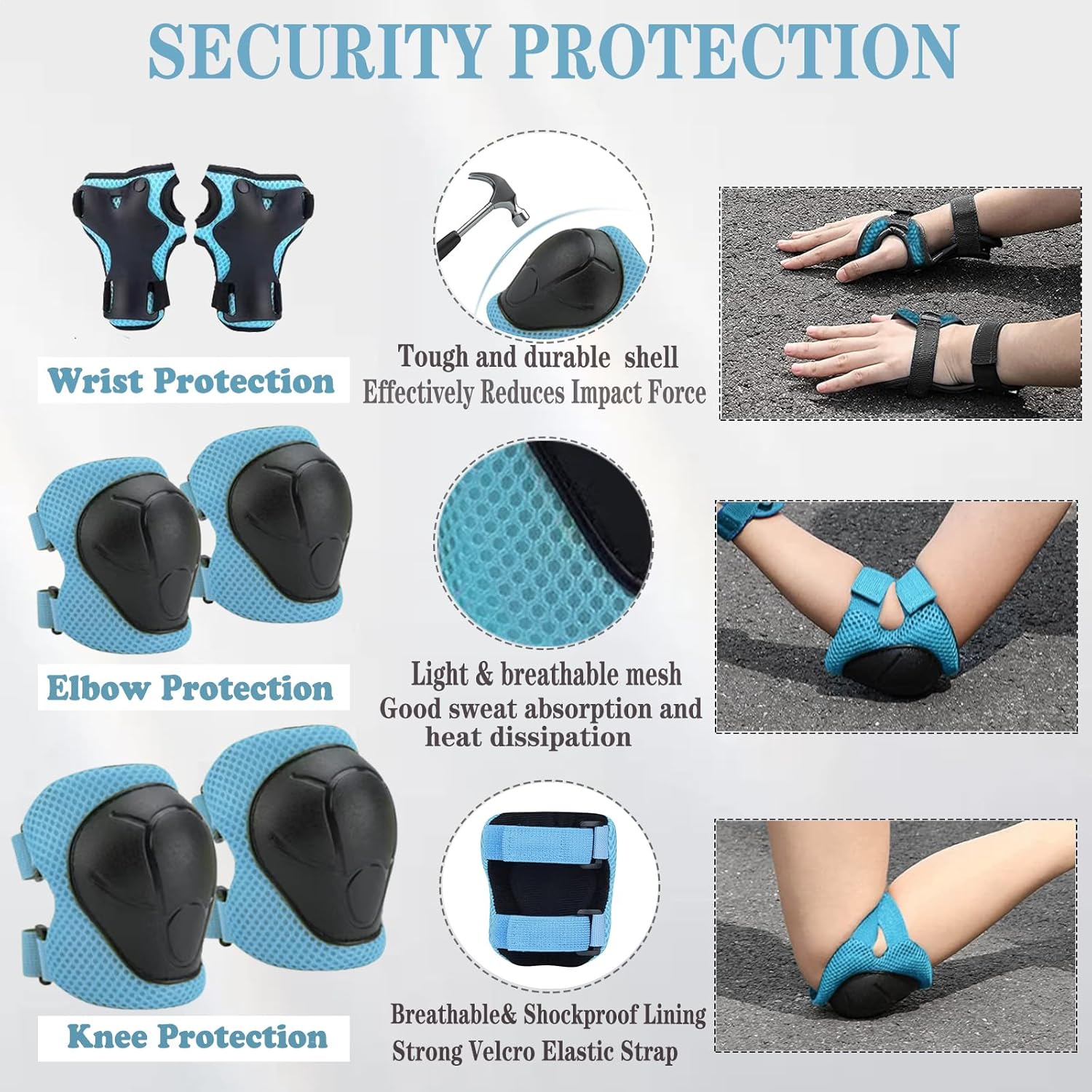 - 【Suitable for Multiple Sports】ours The kids helmet and knee elbow pads with wirst guards are designed for kids sports saftey protection especially for any outdoor activities for many outdoor sports such as skating, skateboard, scooters roller, skating balance bike helmet can provide professional protection to your children, our kids away from hurt when they enjoy the joy of sports.