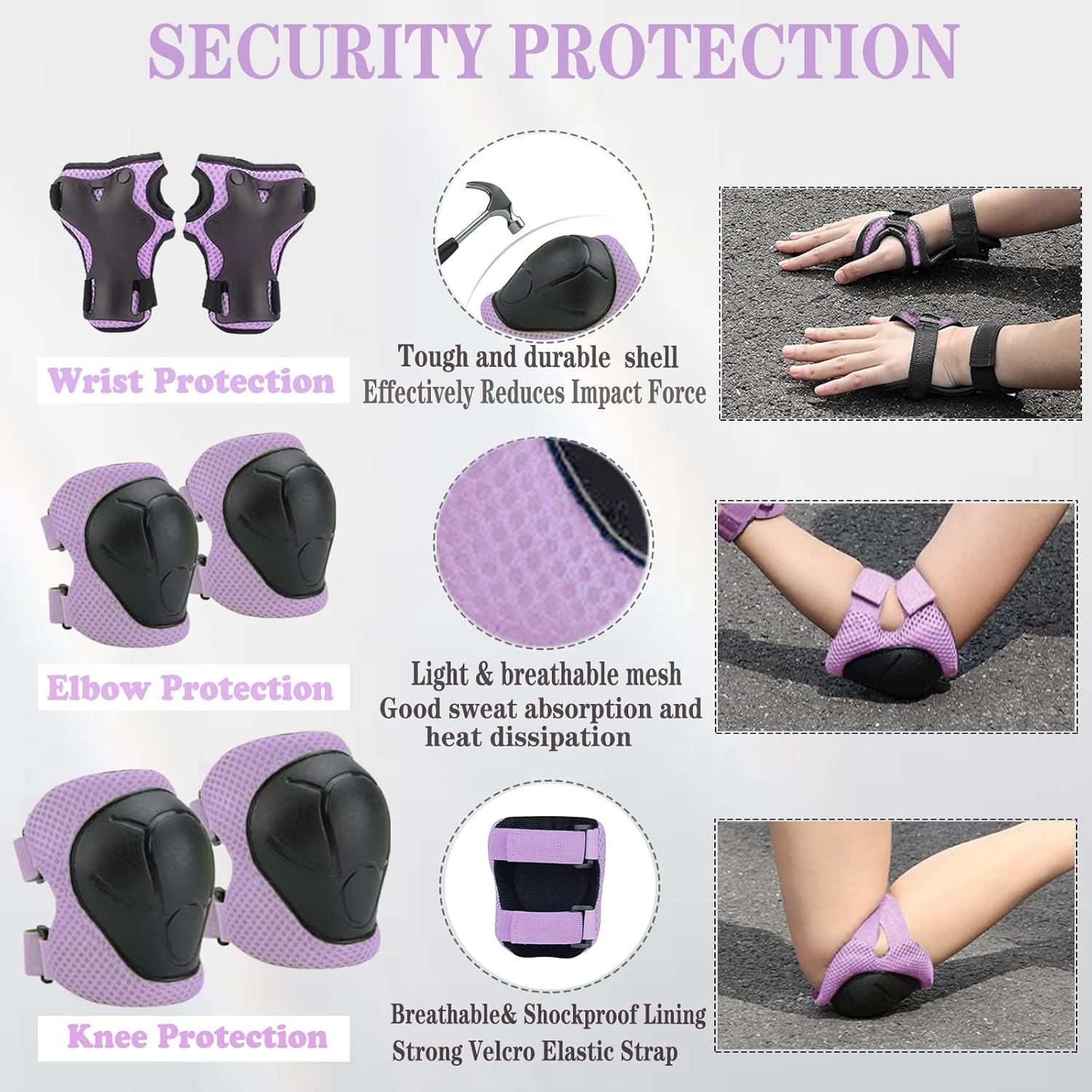 - 【Suitable for Multiple Sports】ours The kids helmet and knee elbow pads with wirst guards are designed for kids sports saftey protection especially for any outdoor activities for many outdoor sports such as skating, skateboard, scooters roller, skating balance bike helmet can provide professional protection to your children, our kids away from hurt when they enjoy the joy of sports.