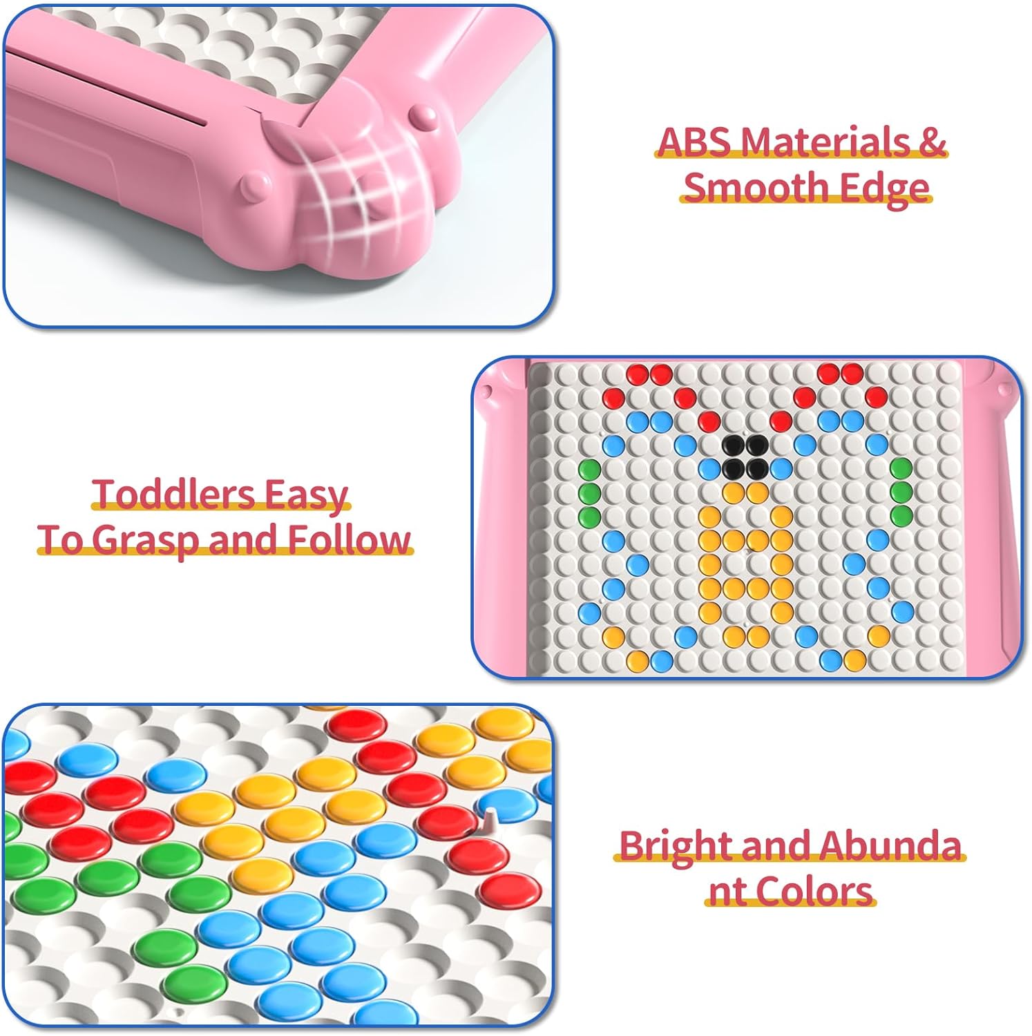 - 【Well Designed Non-toxic】Magnetic drawing board is made of kids friendly ABS plastic material. The rounded corners of the magnetic dots board are smooth to take care of little ones' small hands. All magnetic beans are sealed inside a clear acrylic panel which can effectively avoid the risk of toddlers swallowing. The magnetic pen has just the right magnetic force to pick up 1 magnetic bead, avoiding the situation where the bead cannot be moved or 2 beads are picked up at the same time.