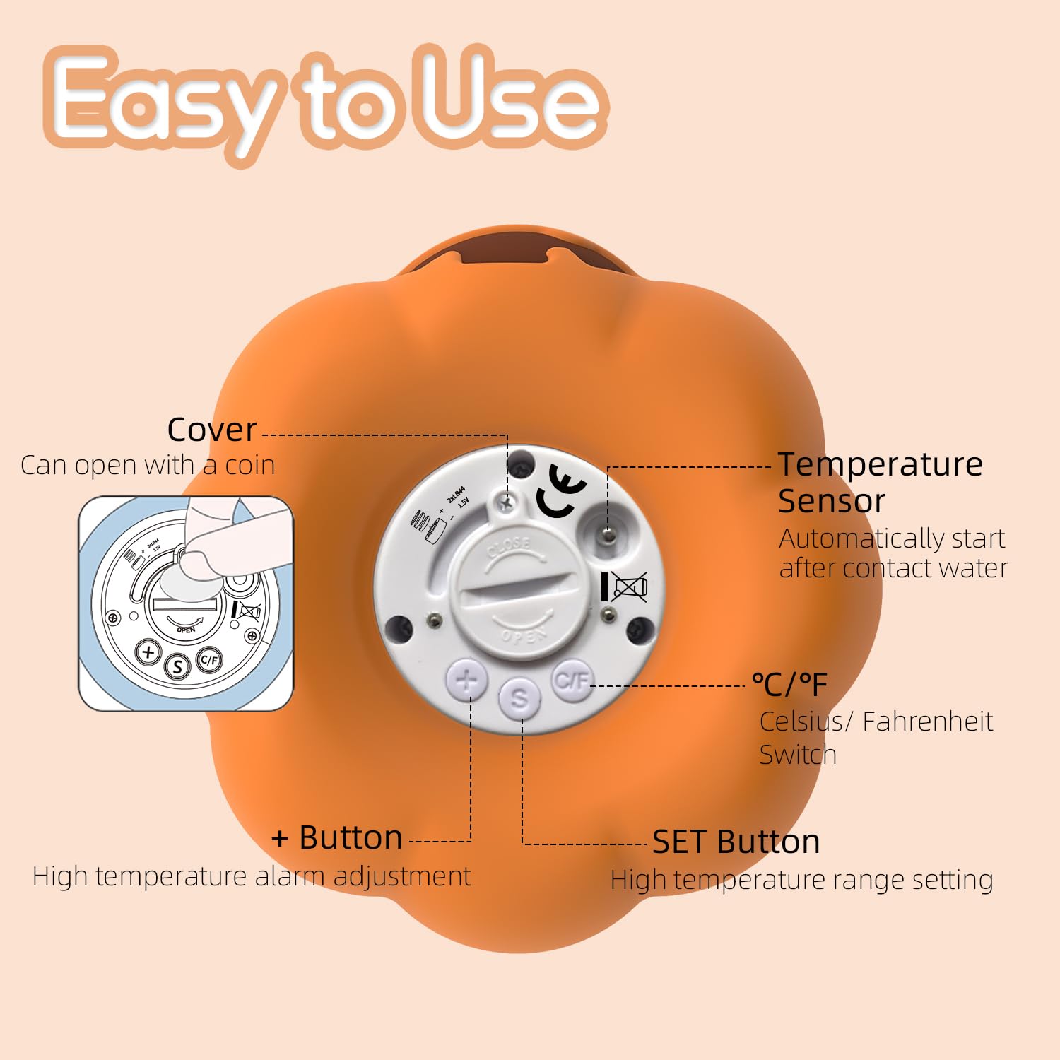 - Engaging Bath Toy - Made of safe materials with smooth edges, ensuring durability and reliability. Pumpkim shape adds joy to the bath, making bath time a fun and interactive learning experience. Not only does it provide accurate temperature readings, but it also serves as a bath toy for your baby to play with in the tub.