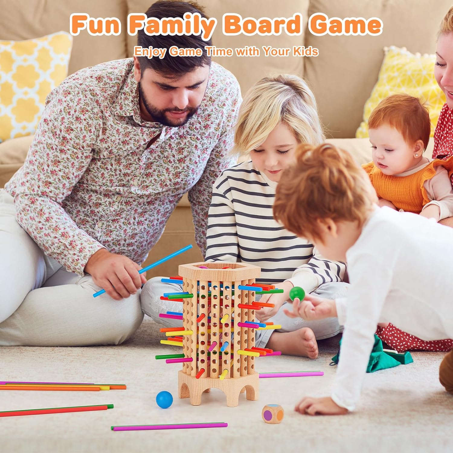 - Classic Kids' Board Game: Inspired by Italy's iconic Leaning Tower of Pisa, this engaging wooden board game combines Montessori learning with family fun! Includes 36 colorful counting sticks and vibrant 6-color balls—perfect for kids, adults, and family game nights.