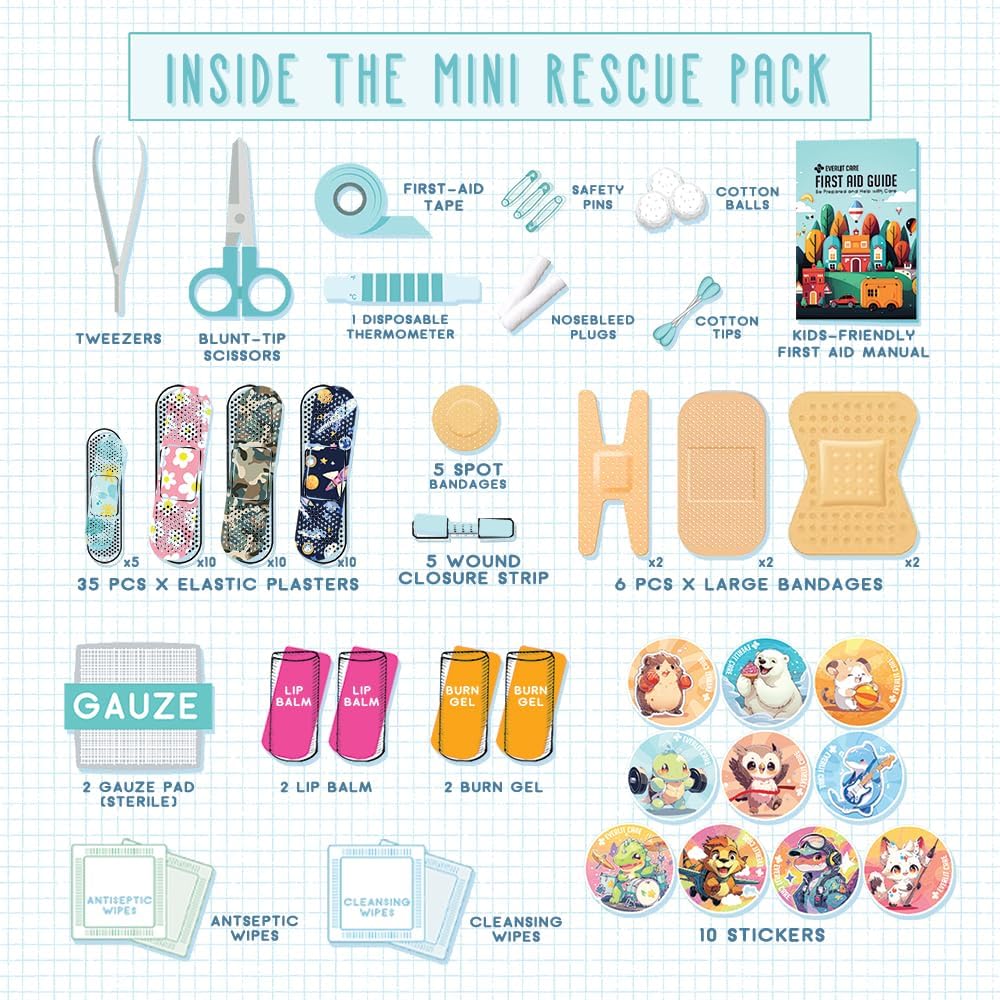 - 🌟 Compact and Portable for On-the-Go Safety: Designed for families on the move, the Mini Rescue Pack ensures you're always prepared with its compact size that easily fits into pockets, bags, and purses.