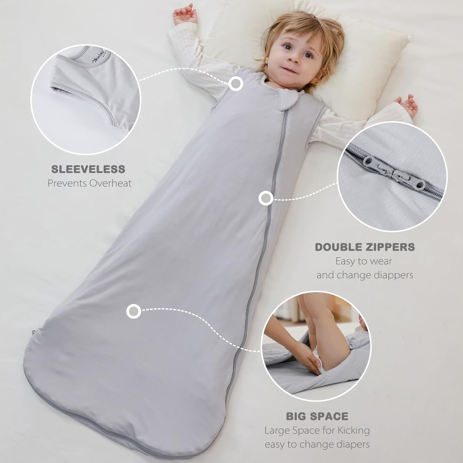 - 【Sleeveless】Baby sleep sack should be sleeveless to aid the heat loss and air circulation. Babies sleeping under traditional blankets rarely sleep with their arms inside. Sleeveless design reduces the risk of overheating. Your baby is covered and warm all night. No more kicked off covers means your baby sleeps more comfortably.