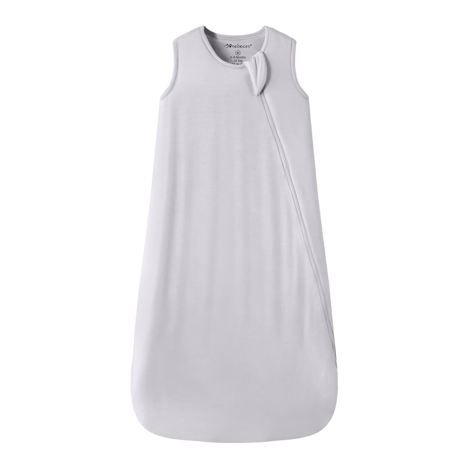 Mosebears Unisex Baby Sleep Sack 1.0 TOG, Supersoft Rayon Made from Bamboo Wearable Blanket with 2-Way Zipper (Light Grey,6-18 Months)