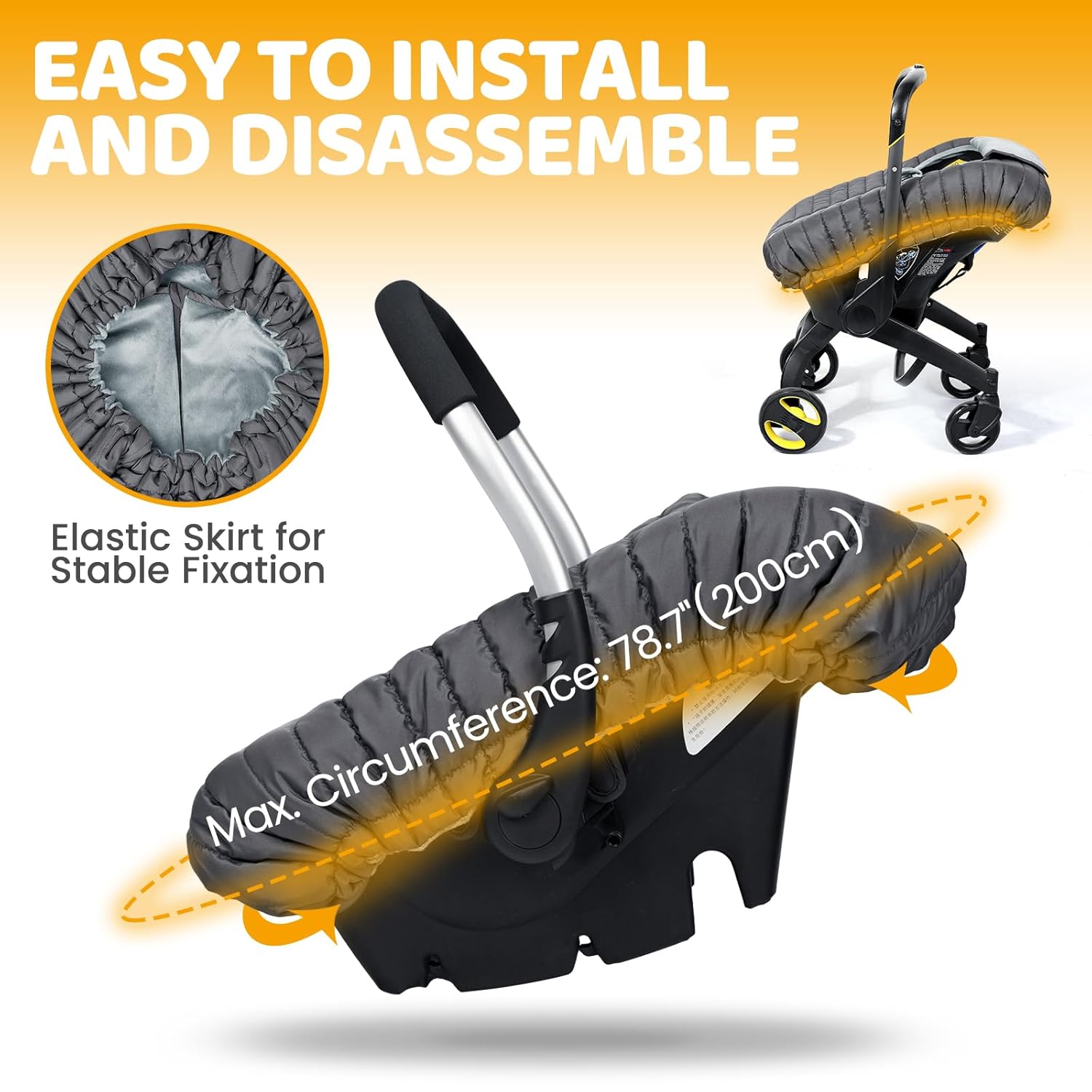 - UNIQUE DESIGN & UNIVERSAL FIT: The "Shower Cap" design style in the back allow parents to put the elastic bag on or fix it around the infant car seats, travel systems etc, which means it can fit on every car seats, travel system car seats etc