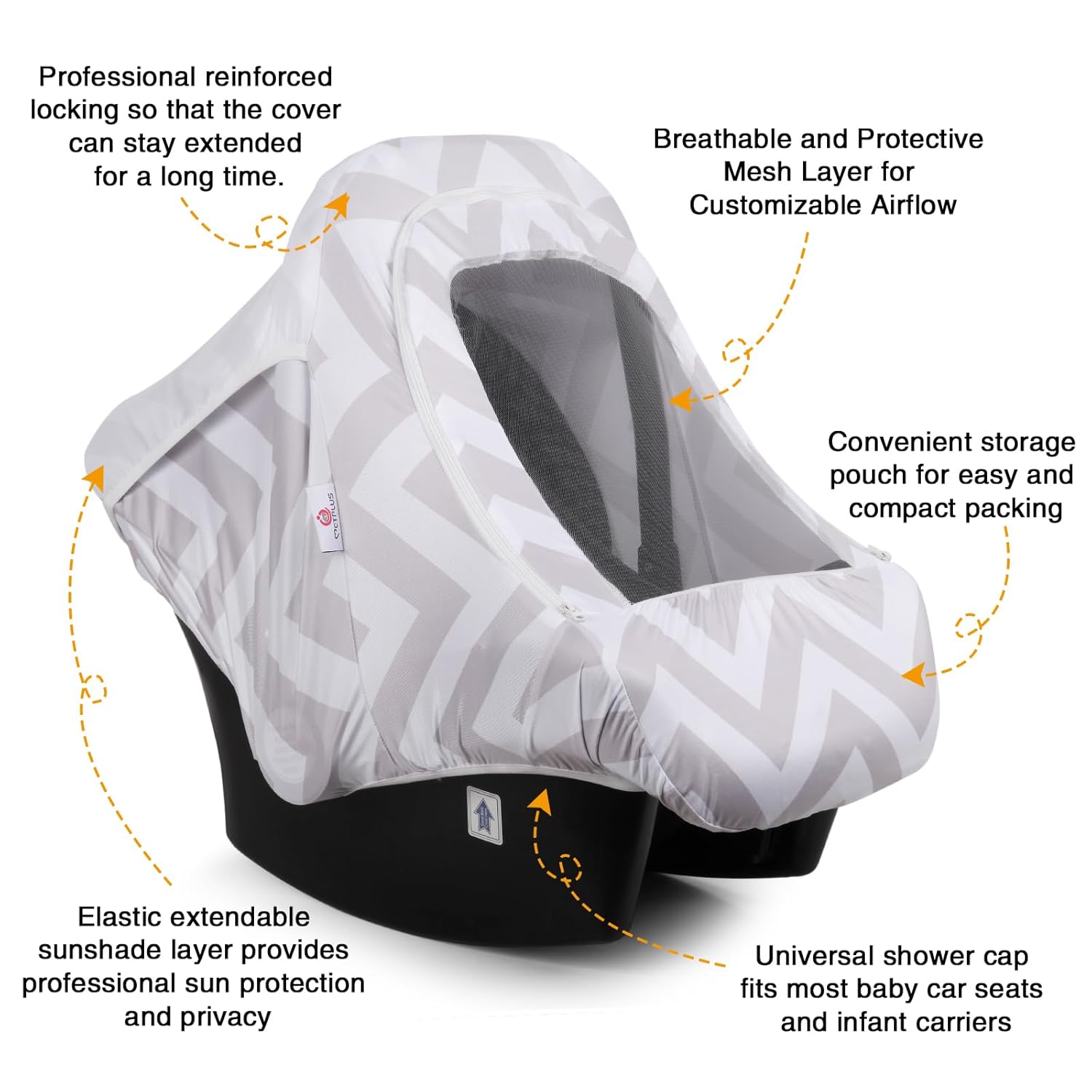 Metplus 2-in-1 Baby Car Seat Cover, Multi Use Cover for Baby Car Seat Canopy with Privacy Sun Shade, Protect Your Baby's Safety Seat with Style, Infant Carrier Covers for Boys & Girls