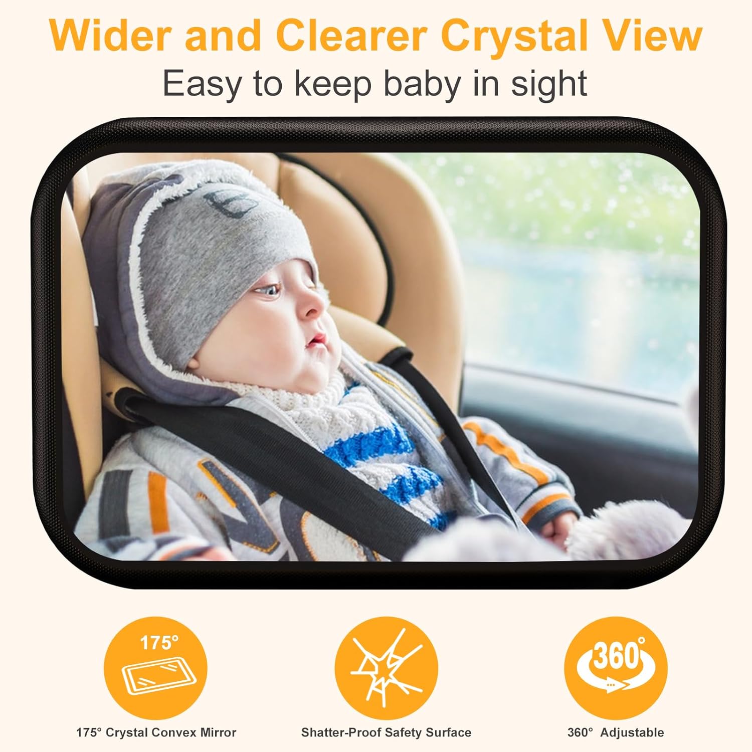 Baby Car Mirror for Rear Facing Seat - Clear View, Upgraded Hook Clip Design, 360 Rotation, Wide Crystal View, Shatterproof Crash Tested and Certified