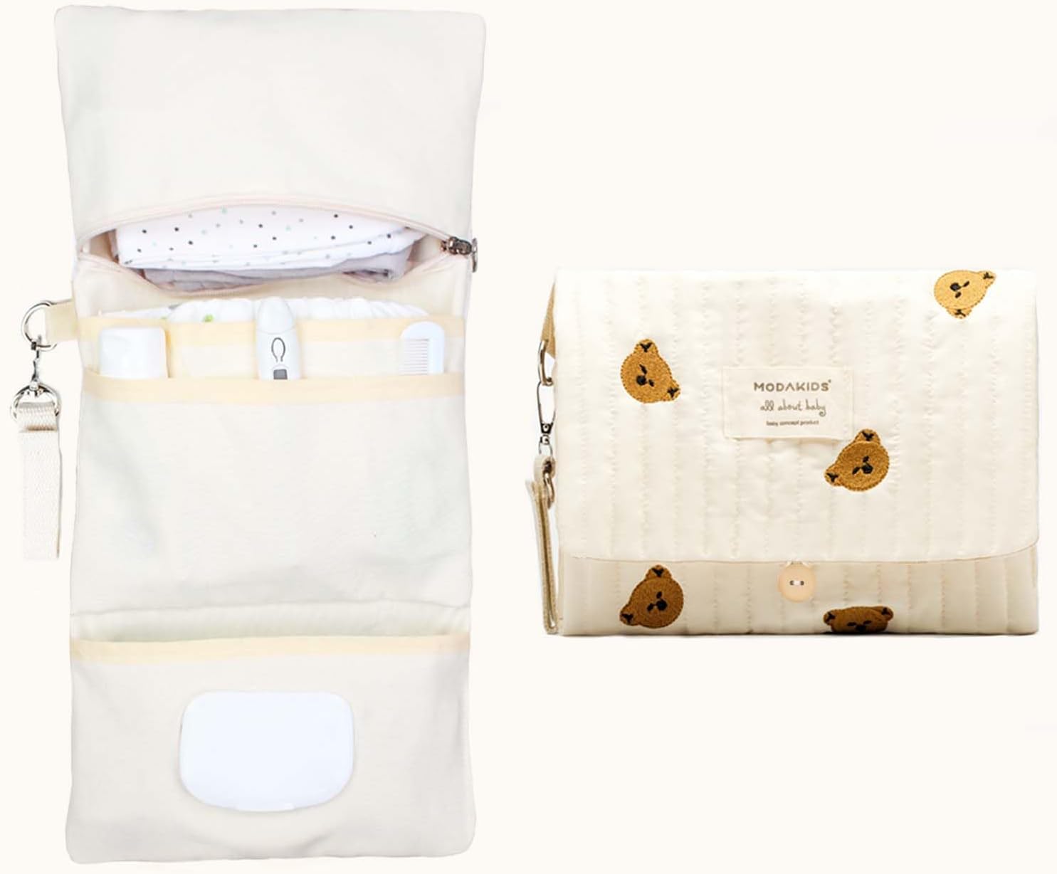 - Stylish Design:Crafted with meticulous attention to detail, the quilting fabric features a lovely bear embroidery pattern that adds a whimsical edge to your parenting accessories. The cream color palette adds timeless appeal, suitable for both boys and girls.
