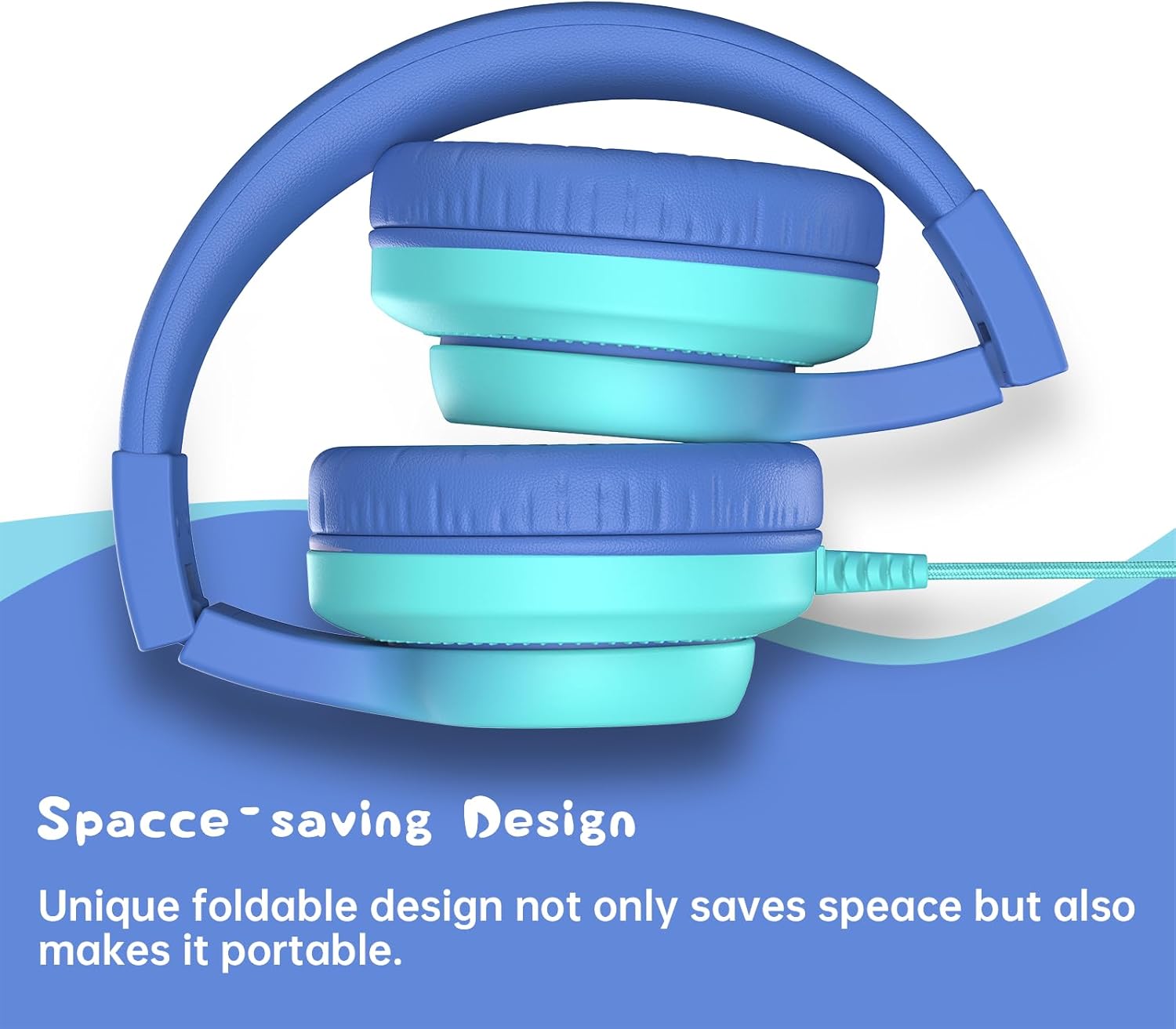 Bila Kids Headphones, Wired Over Ear Headphones with Microphone, Volume Limiter for Girls & Boys, Foldable for Learning & Entertainment
