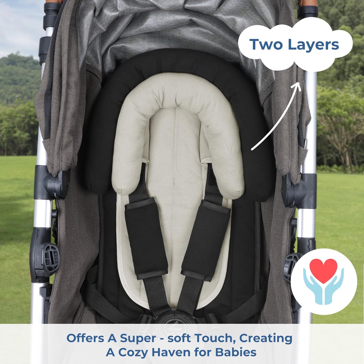- Babybody Support and Strap Cover Set: The seat liner baby car seat insert has a clever nested design, cotton fabric padding is soft and breathable, suitable for all seasons. Reversible baby body cushion pad is ultra soft to the touch, absorbent, hypoallergenic, and sturdy