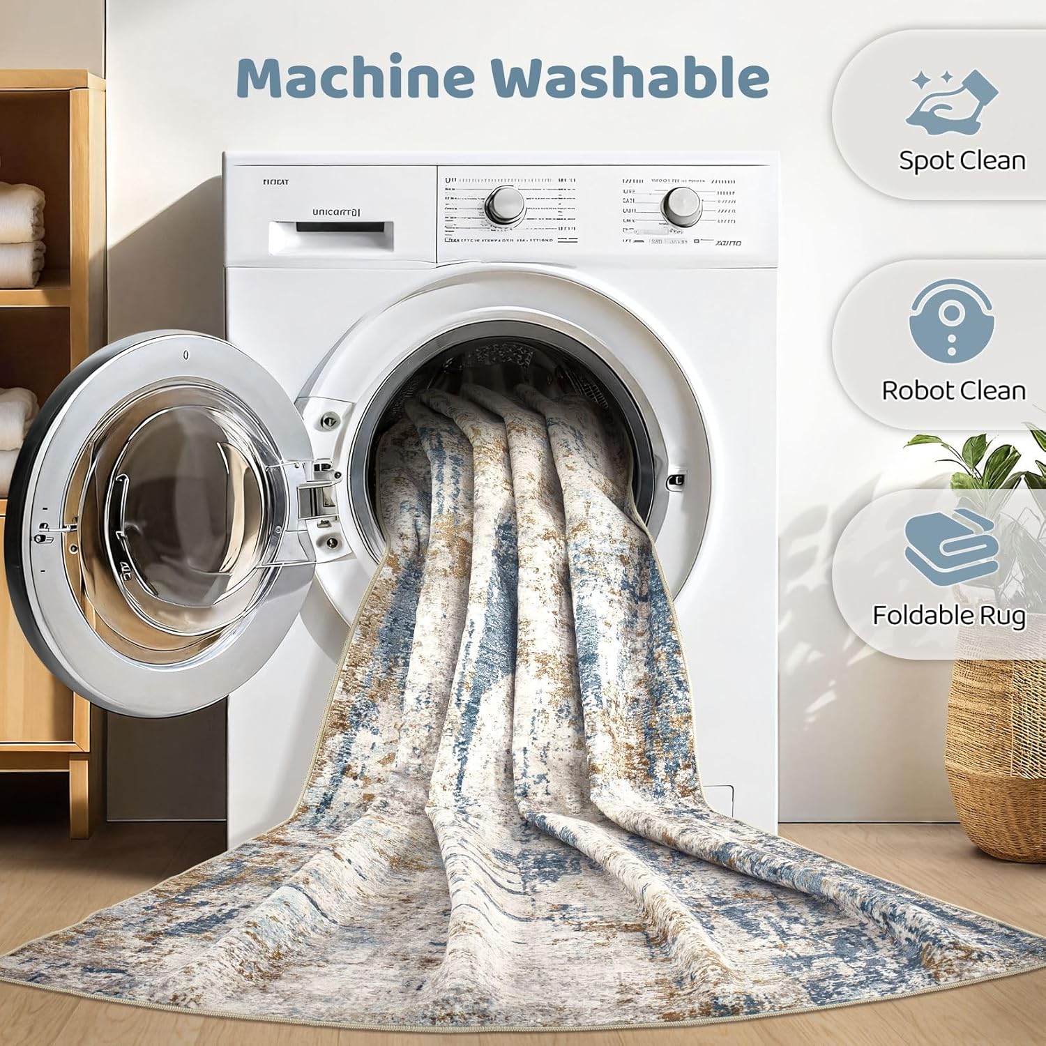- MACHINE WASHABLE: Our rugs for living room is washable for easy care, directly toss in washing machine in cold water. for minor stains, simply vacuum with a hand-held vacuum or shake off outdoors. for water or coffee stain, wipe with a dry towel promptly