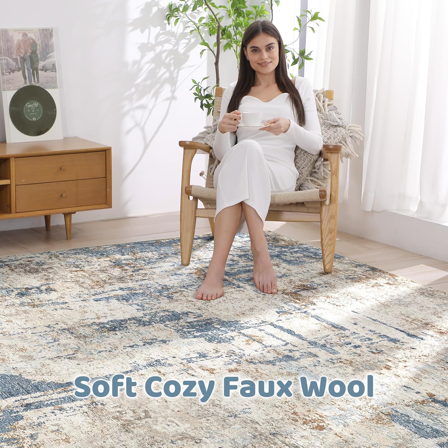 - MACHINE WASHABLE: Our rugs for living room is washable for easy care, directly toss in washing machine in cold water. for minor stains, simply vacuum with a hand-held vacuum or shake off outdoors. for water or coffee stain, wipe with a dry towel promptly
