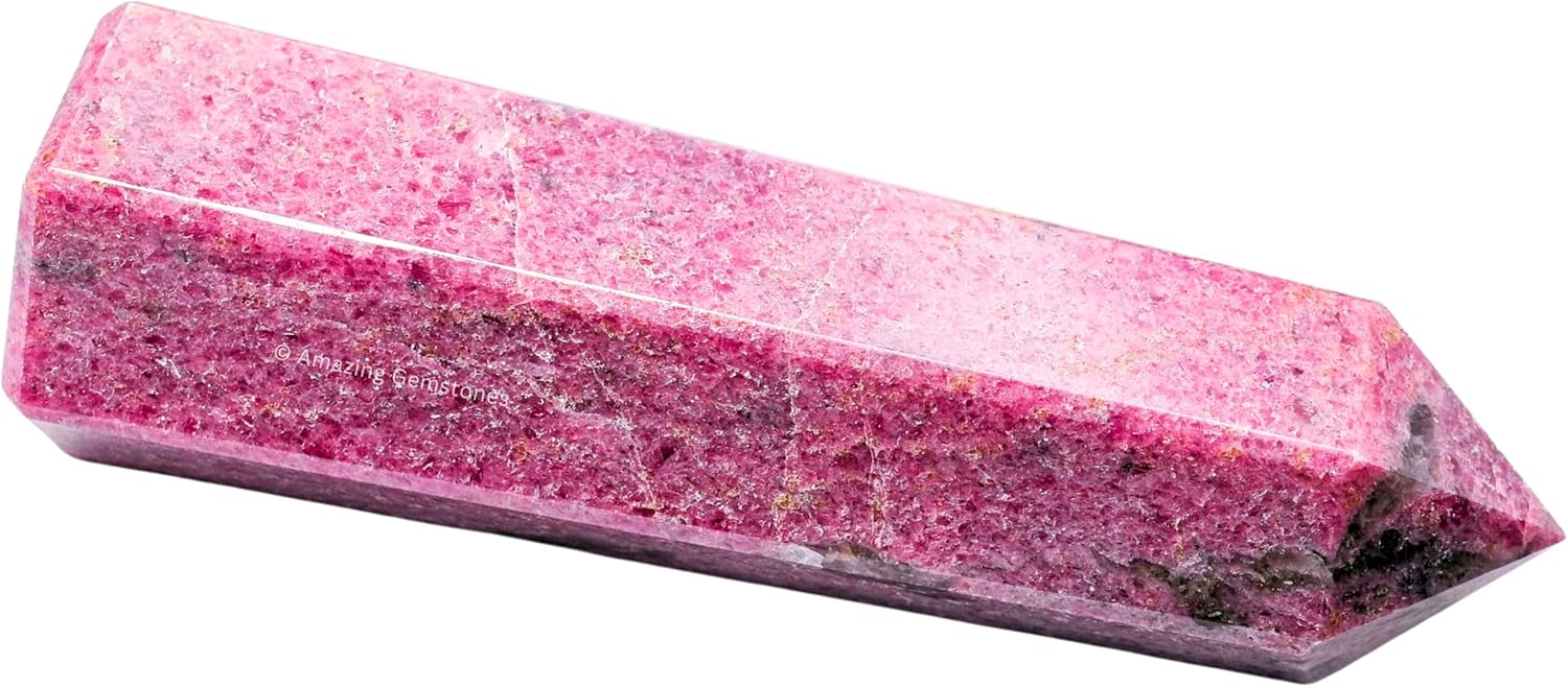 - Large Rhodonite Crystal Tower will uplift and purify the energy (if its point is not damaged), so you can place it in any area that needs to be re-energized with strong energy. Length of this tower / wand / obelisk / point is 5.5" inch to 6" inch (13.5cm to 15cm) & width is 2 inch (5 cm).