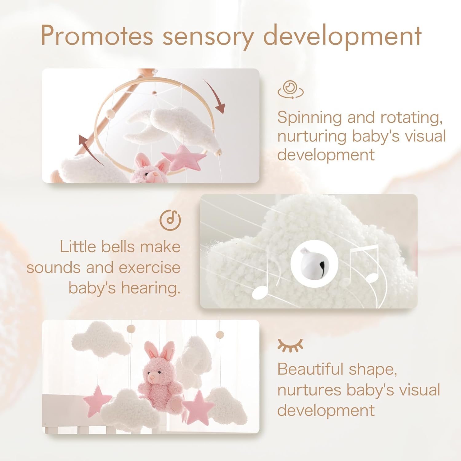 EERKEOD Baby Crib Mobile Bunny Nursery Mobile for Boys Girls Teddy Velvet Mobile Nursery Decor for Infant Bedroom Hanging Baby Mobile for Bassinet Newborn Baby Gift(Pink Bunny)