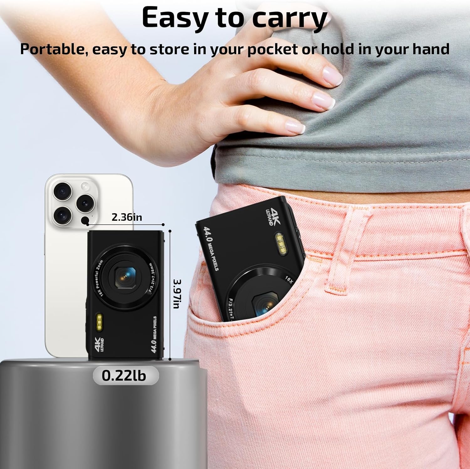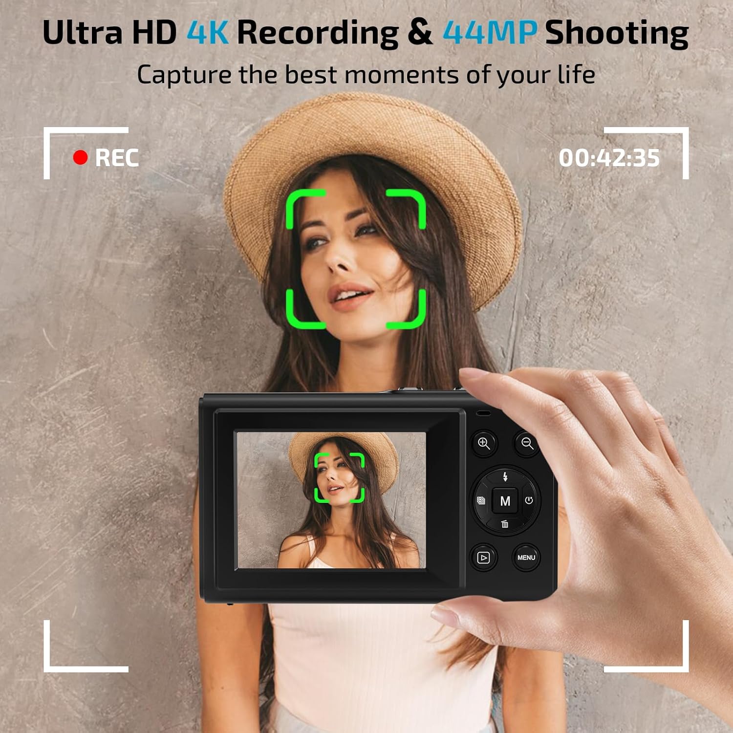 - Capture Stunning Moments with Ease: Small Camera features an advanced CMOS image sensor, delivering 4K video and 44MP photos—so you can snap vivid, lifelike images in an instant. Just press the shutter for one second, and let the camera do the rest.Perfect for beginners and kids, it’s effortless fun!