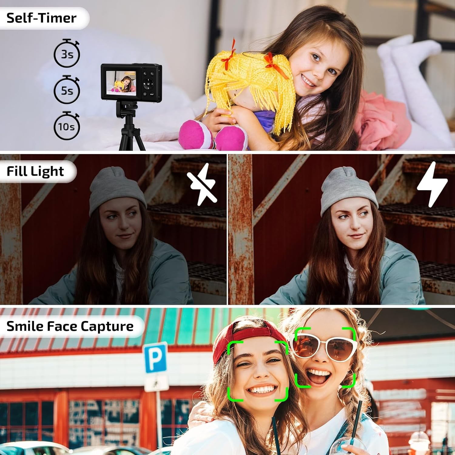 - Spark Your Child's Creativity: Kids Camera comes with multiple fun filters to create custom photos in a snap! Its built-in self-timer (3s/5s/10s) makes selfies a breeze, while the LED fill light ensures bright, clear shots—even in low light. Capture every awesome moment effortlessly!