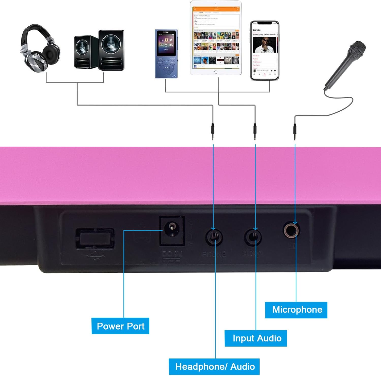 61 Key Electronic Keyboard Piano with Lighted Up Keys, Musical Mini Piano Keyboard with Sheet Music Stand Mircophone, Digital Portable Keyboards for Beginners Kids Adults, Pink