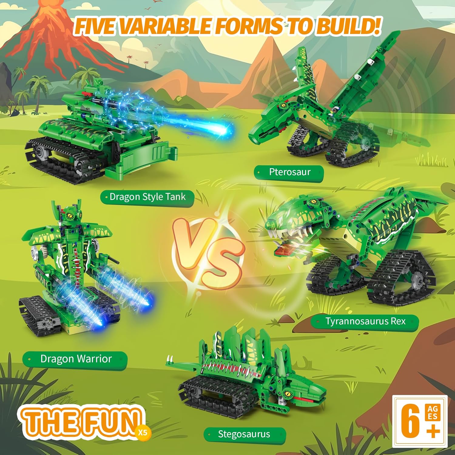 5 in 1 Dinosaur Toy for 6-12 Years Old Kids Boys, Robot Dino Building Set with APP & 2.4GHz Remote Control Science Programmable Building Block Dinosaur Kit, Birthday Gifts for Age 6 7 8 9 10 11 12