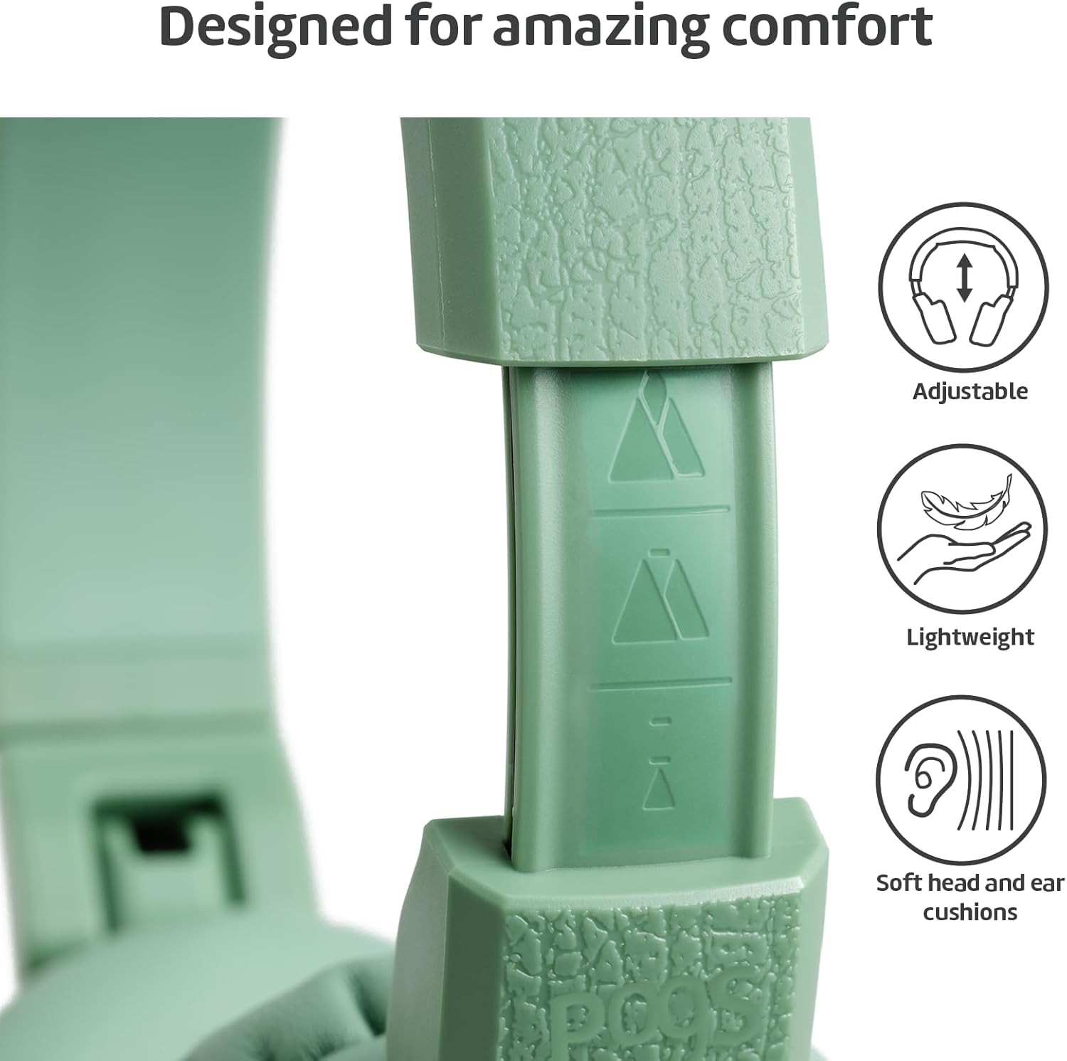 POGS Kids Wired Headphones | The Elephant 2 | Adjustable, Durable Headphones for Kids 3+ | Limited to 85 dB, Microphone | On-Ear | Music-Sharing Function Safe 3.5mm Audio Cable (3.2ft) (rGreen)