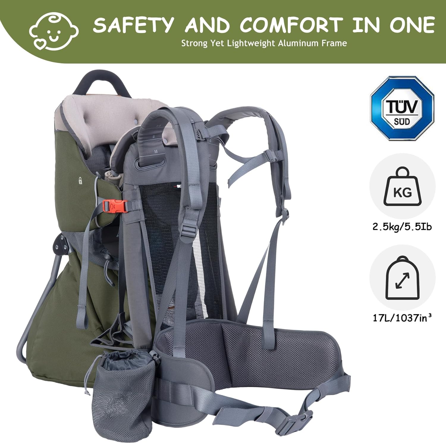 - PORTABLE & EASY TO STORE: The baby backpack carrier hiking is designed to fold like a laptop. The child carrier backpack can be quickly folded for easy storage and portability while on the go. The baby backpack carrier also has a detachable canopy which can be stored in the back bag that shields your little one from the elements. Perfect for spontaneous trips and everyday use, making every adventure hassle-free