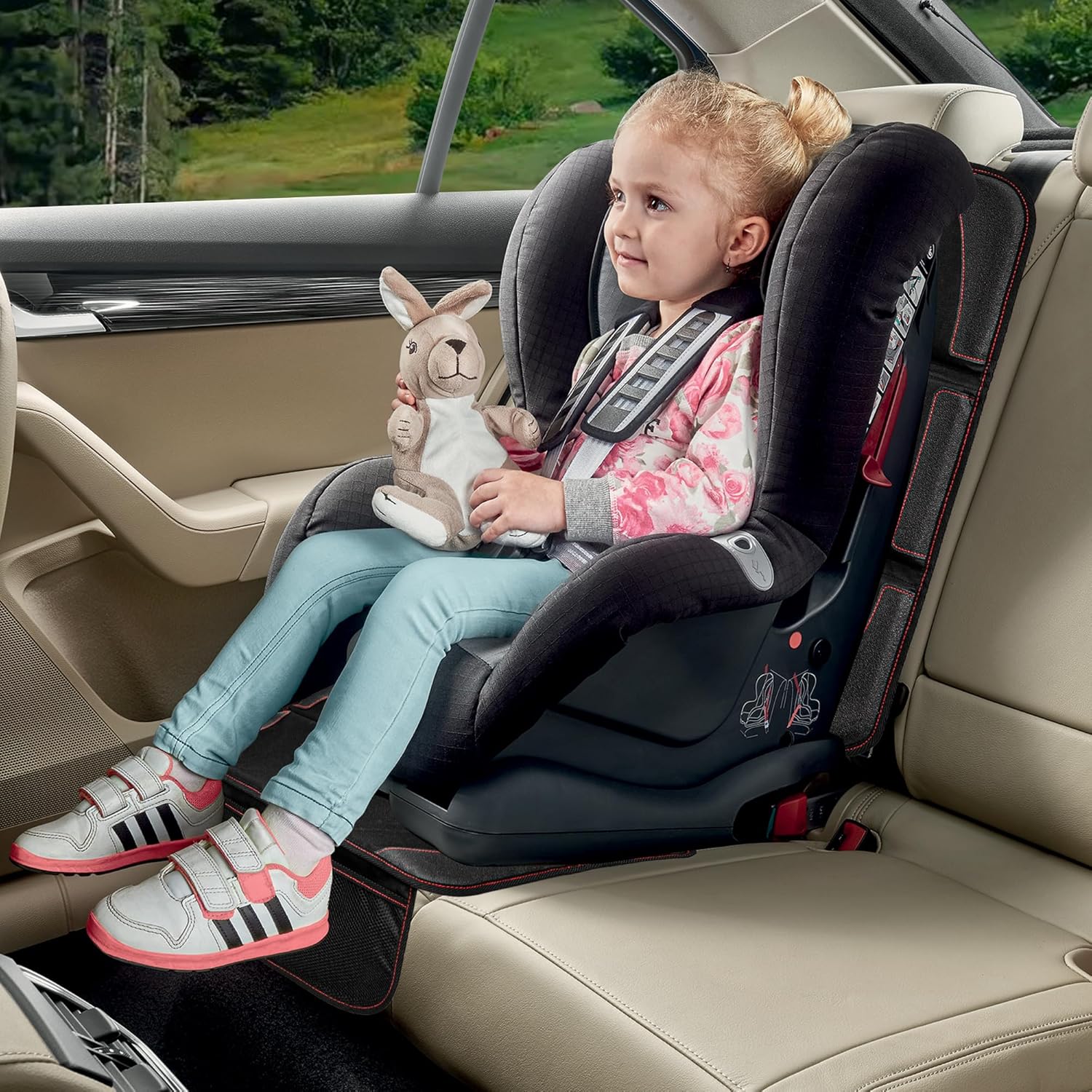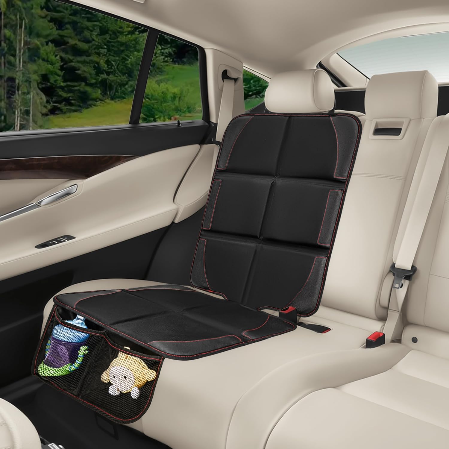 - Car seat protector covers for baby carseat made of waterproof durable 600D polyester with thick padding. Baby car seat cover can protects the back seat of the car from wear and tear of the child seat, make us comfortable while traveling