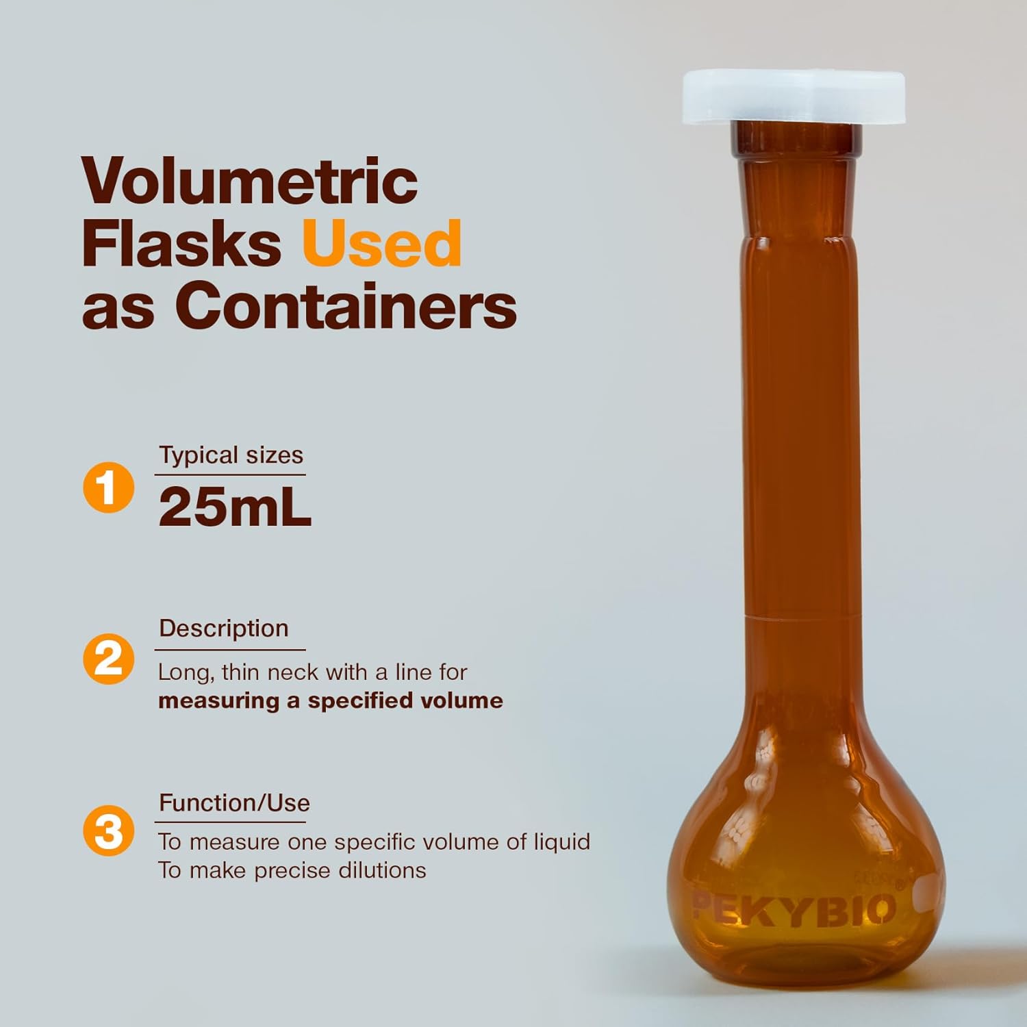 25ML Amber Volumetric Flask Set|ASTM Class A 3.3 Borosilicate Glass|Polypropylene Stopper|White Graduation|for Analytical Chemistry Work|2PCS