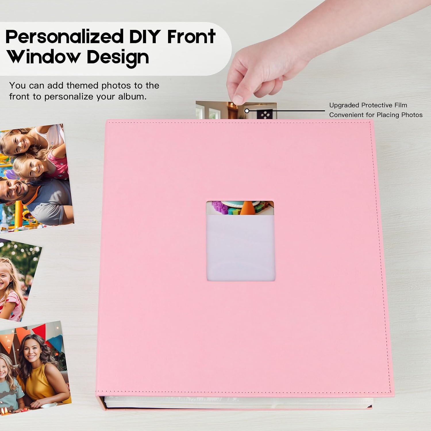 Aevdor 1000 Pockets Photo Album 4x6, Extra Large Capacity Leather Cover Wedding Family Picture Book Holds 1000 Horizontal and Vertical Pictures, Acid-free Pages 4x6 Photo Album with Front Window, Pink