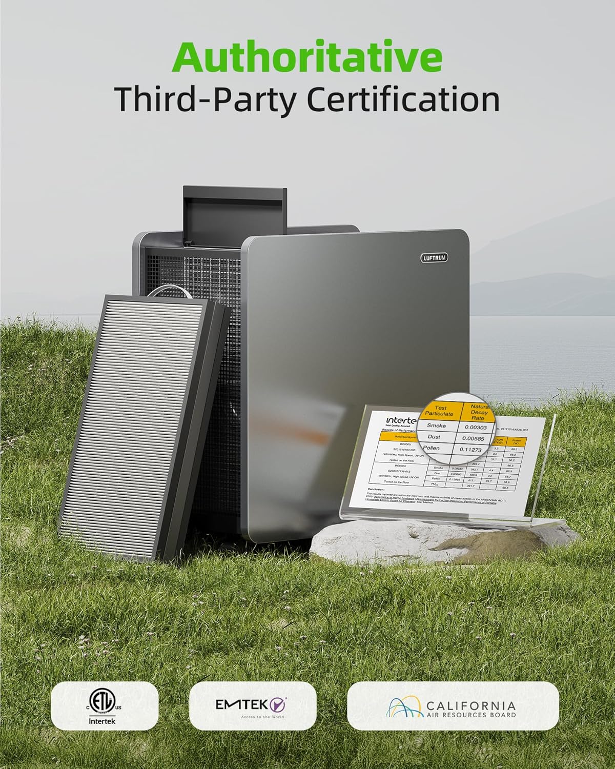 - 100% Ozone-Free Air Purifier: This air purifier meets the California Air Resources Board (CARB) certification requirements for indoor cleaning equipment and is ETL certified. Replacement air purifier filters are available on Amazon ASIN: B0BNQ6JGFX (To ensure the best performance, please purchase LUFTRUM official replacement filters. Using unofficial filters may reduce performance or even damage the air purifier.)