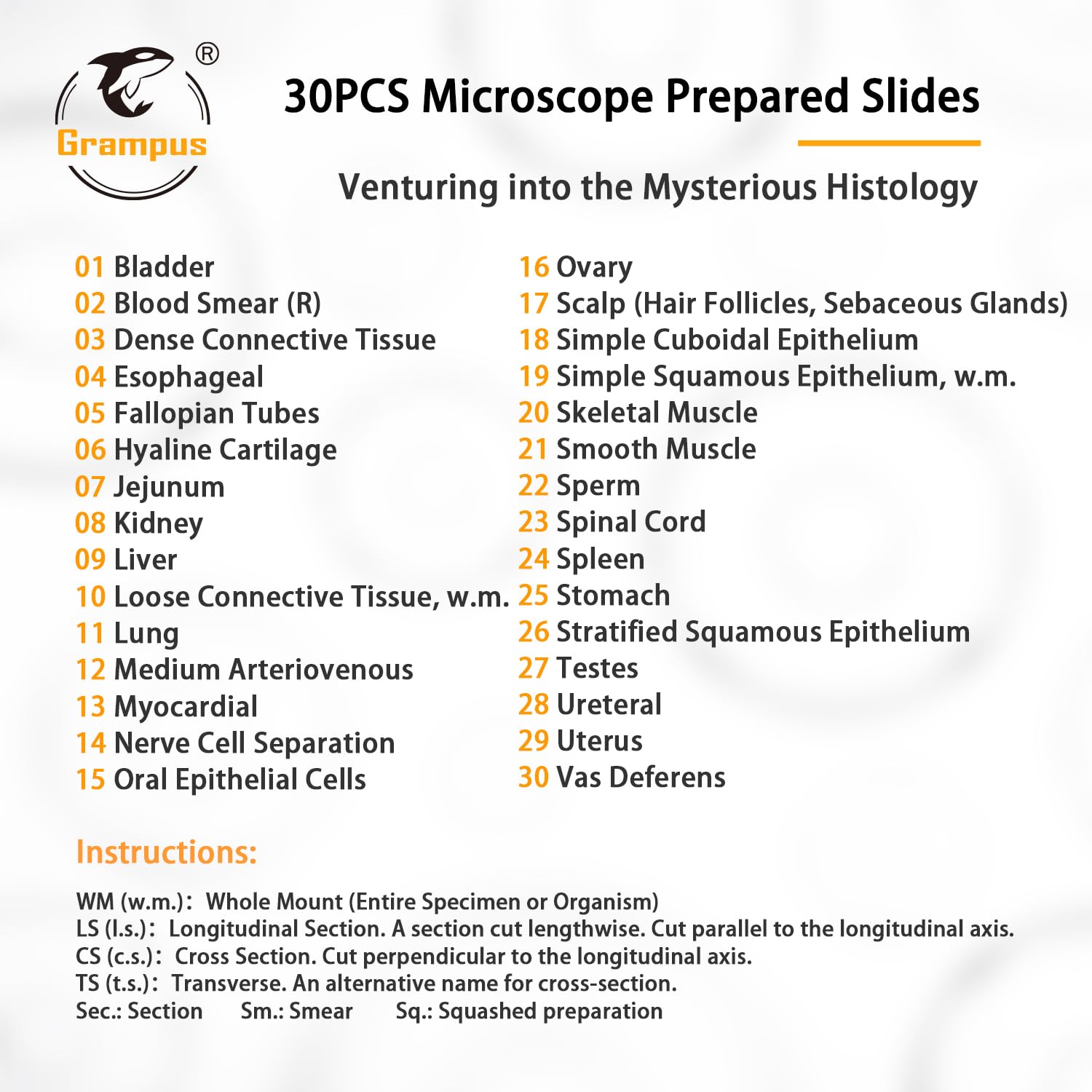 - Abundant Observation Type: Well selected microscope prepared slides of histology. Each slide has a name label and attached a list of all glass slide catalogues, helps stimulate children's imagination and creativity as well as their interest in exploring nature