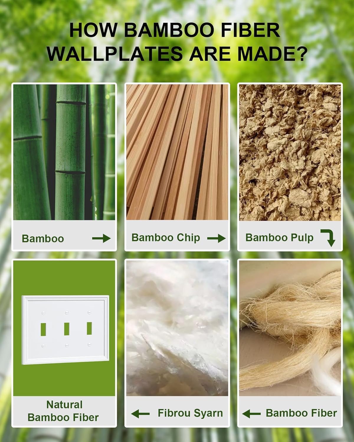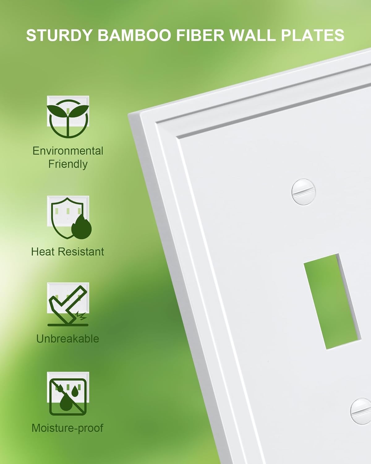 2-Pack Triple Toggle Light Switch Cover Plate, White Decorative Switch Plate Covers, Natural Bamboo Fiber 3 Gang Wall Plate, Corrosion Resistant