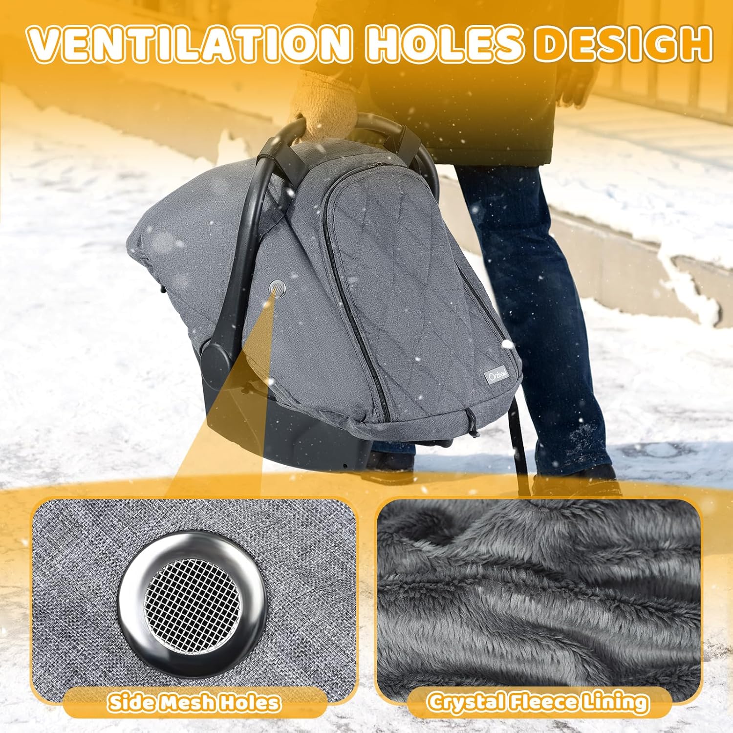 Orzbow Baby Car Seat Cover, Winter Carseat Cover with Zipper Access, Weather & Wind Proof, Side Breathable, Compatible with Doona Car Seats and Strollers, Newborn Essentials Carrier Canopy, Light Grey