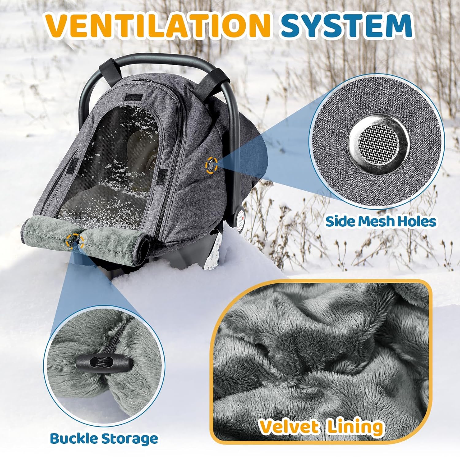 Orzbow Winter Car Seat Cover for Babies, Waterproof Carseat Canopy Cover with Peep Window of Breathable Mesh, Warm and Cozy Baby Car Seat & Carrier Covers for Cold Weather, Machine Washable, Dark Grey