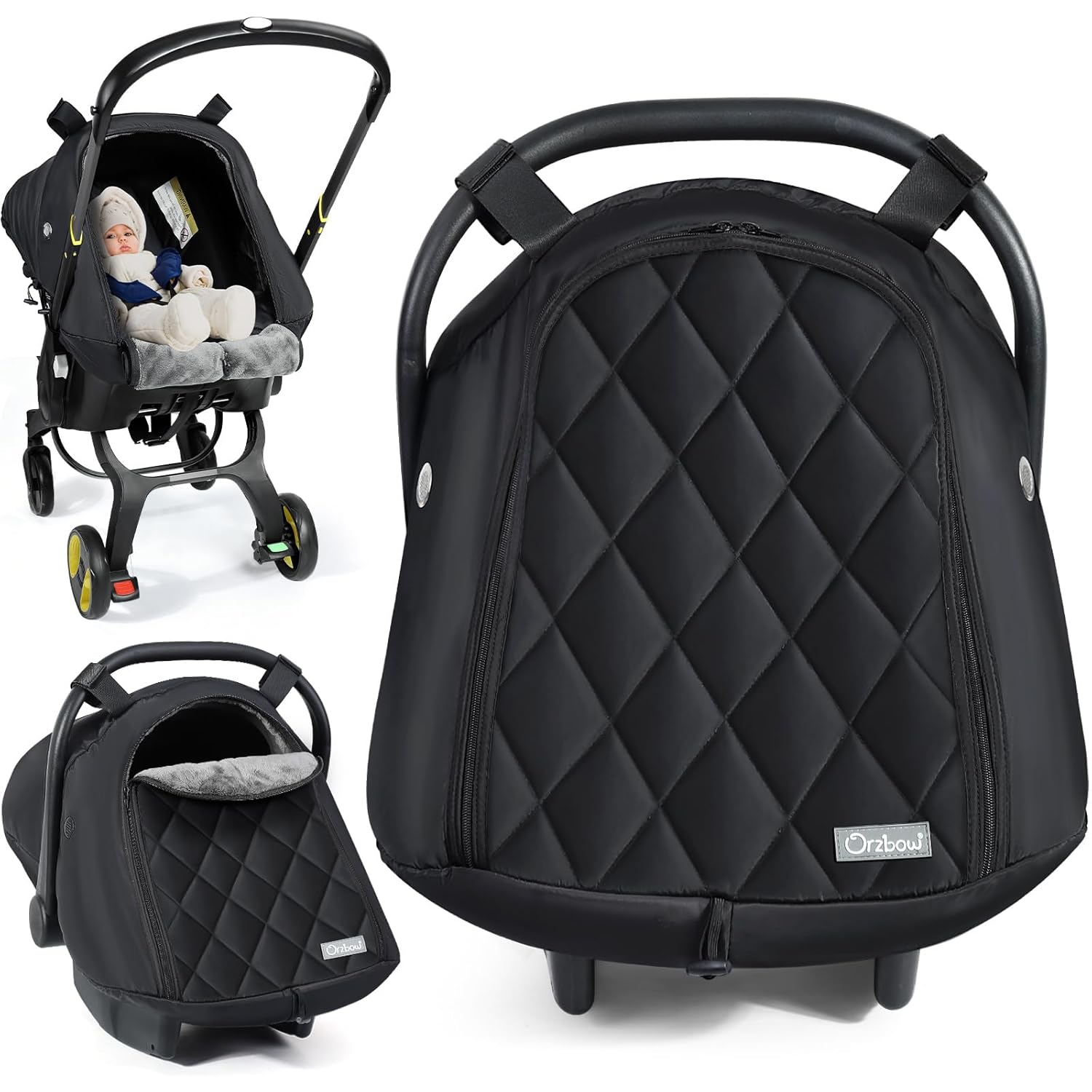 Orzbow Baby Car Seat Cover, Winter Carseat Cover with Zipper Access, Rain, Snow and Wind Proof, Side Breathable, Compatible with Doona Car Seats and Strollers, Newborn Essentials Carrier Canopy, Black