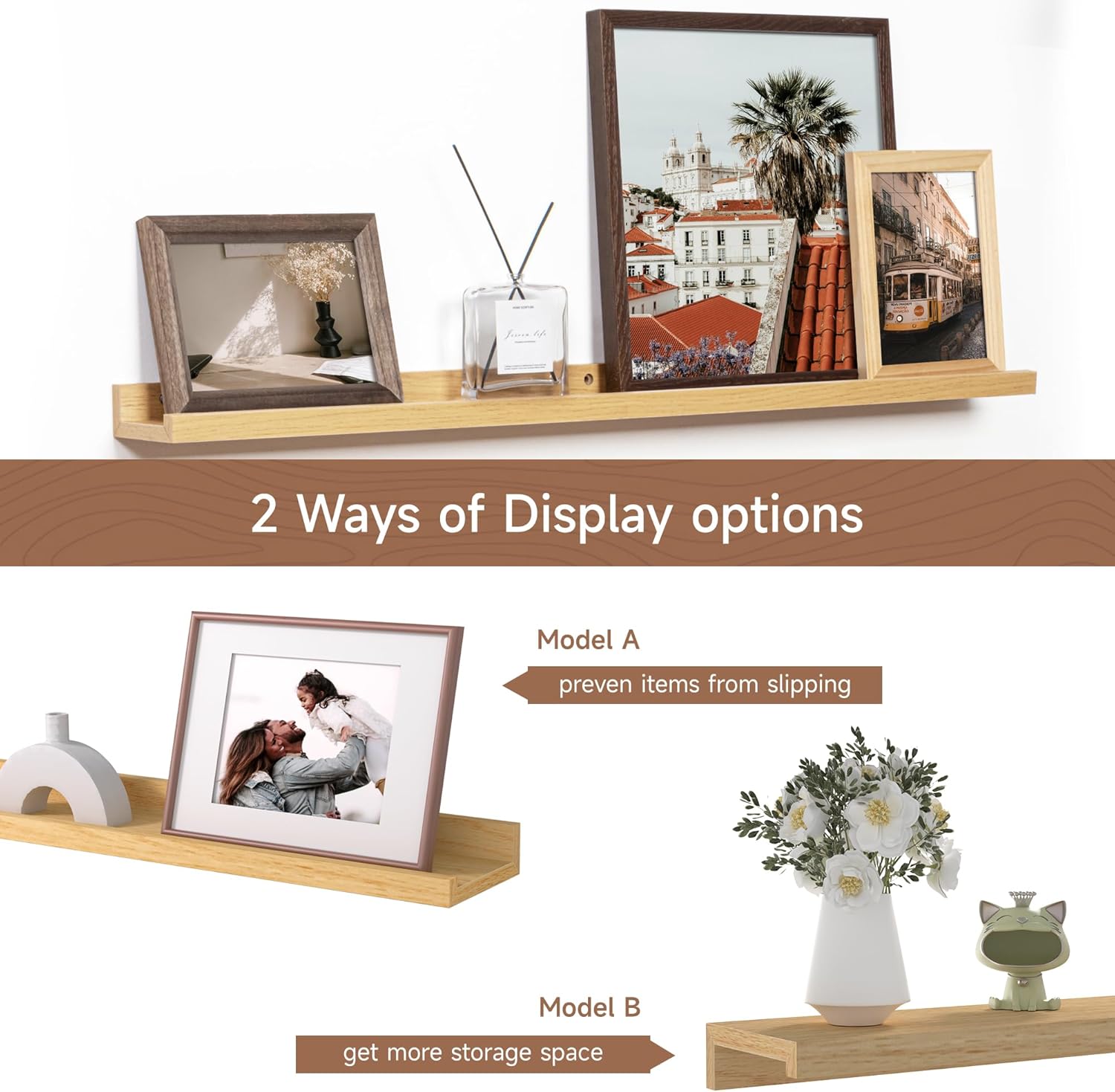 Fun Memories Picture Ledge Shelf, 36 Inch Floating Shelves Set of 2, Nursery Book Shelves for Toys Storage, Kids Bookshelf Wall Mounted for Wall Decor Books Photo Frames, Oak
