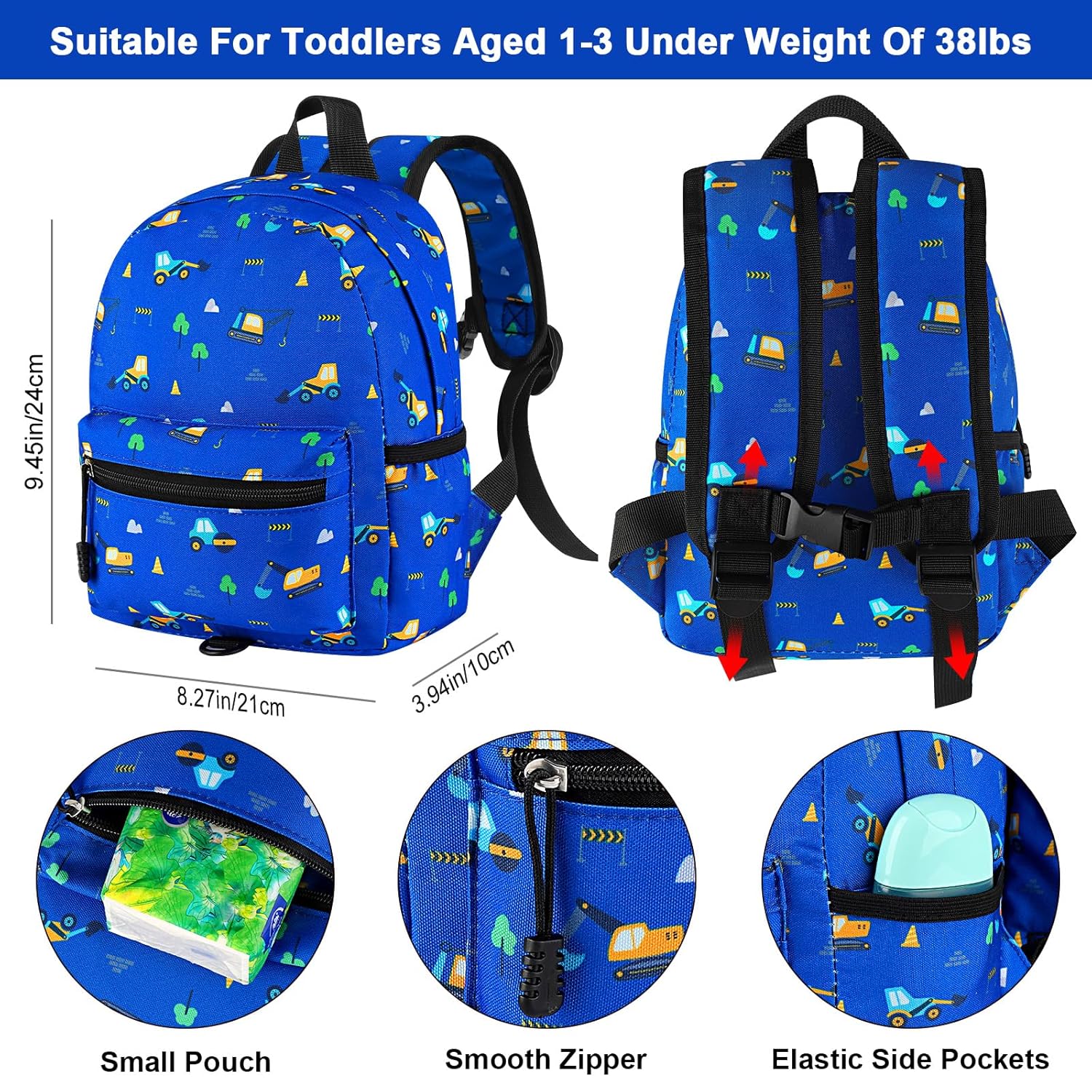 - Compact Size: The kid harness backpack is suitable for toddlers aged 1-3 under weight of 38lbs. Length of the shoulder strap can be adjusted freely. Fantastic little backpack, perfect to fit your kids' essentials in as nappy, wipes, bottle, change of clothes, snack, toys etc