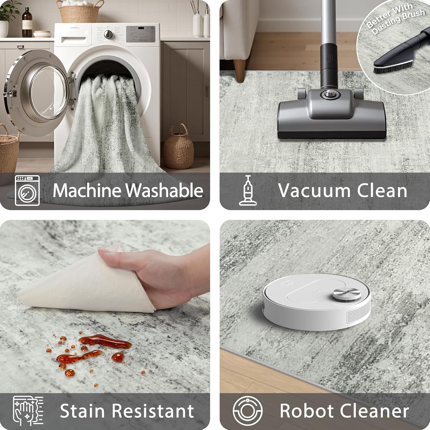 Area Rugs 8x10 Living Room Rugs: Large Modern Abstract Washable Rug with Non-Slip Backing, Thin Carpet for Dining Room Table Bedroom Nursery Indoor Home Office-Gray