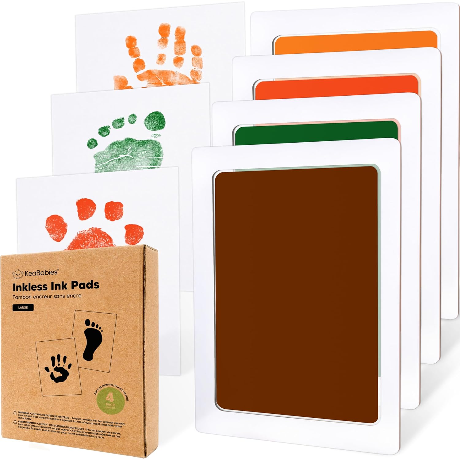 4-Pack Inkless Baby Hand and Footprint Kit - Mess Free Ink Pad for Newborn Keepsake, Dog Nose & Paw Print Kit, Clean Touch Ink Pad for Baby Hand & Footprints, Ideal New Mom Gifts (Autumn, L)