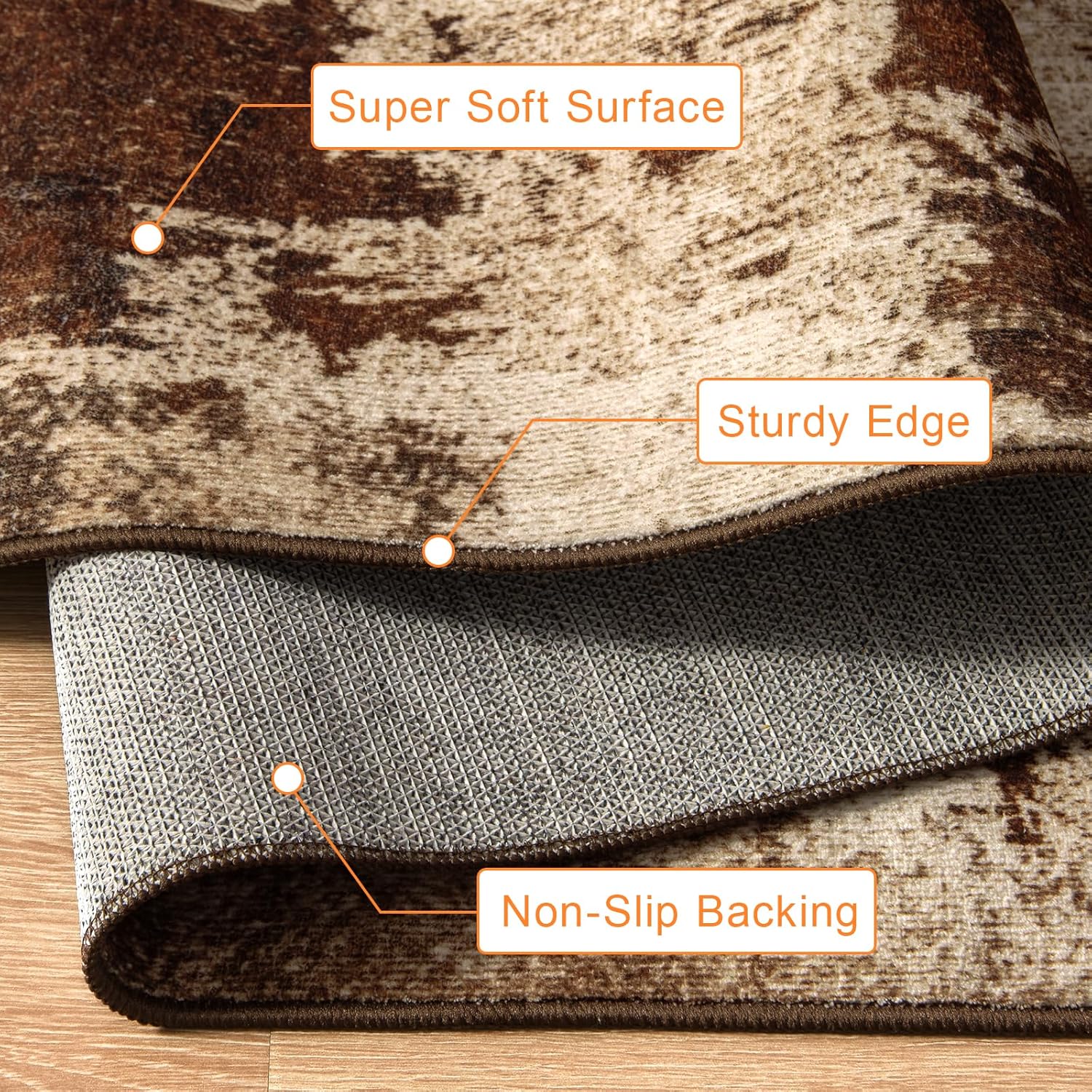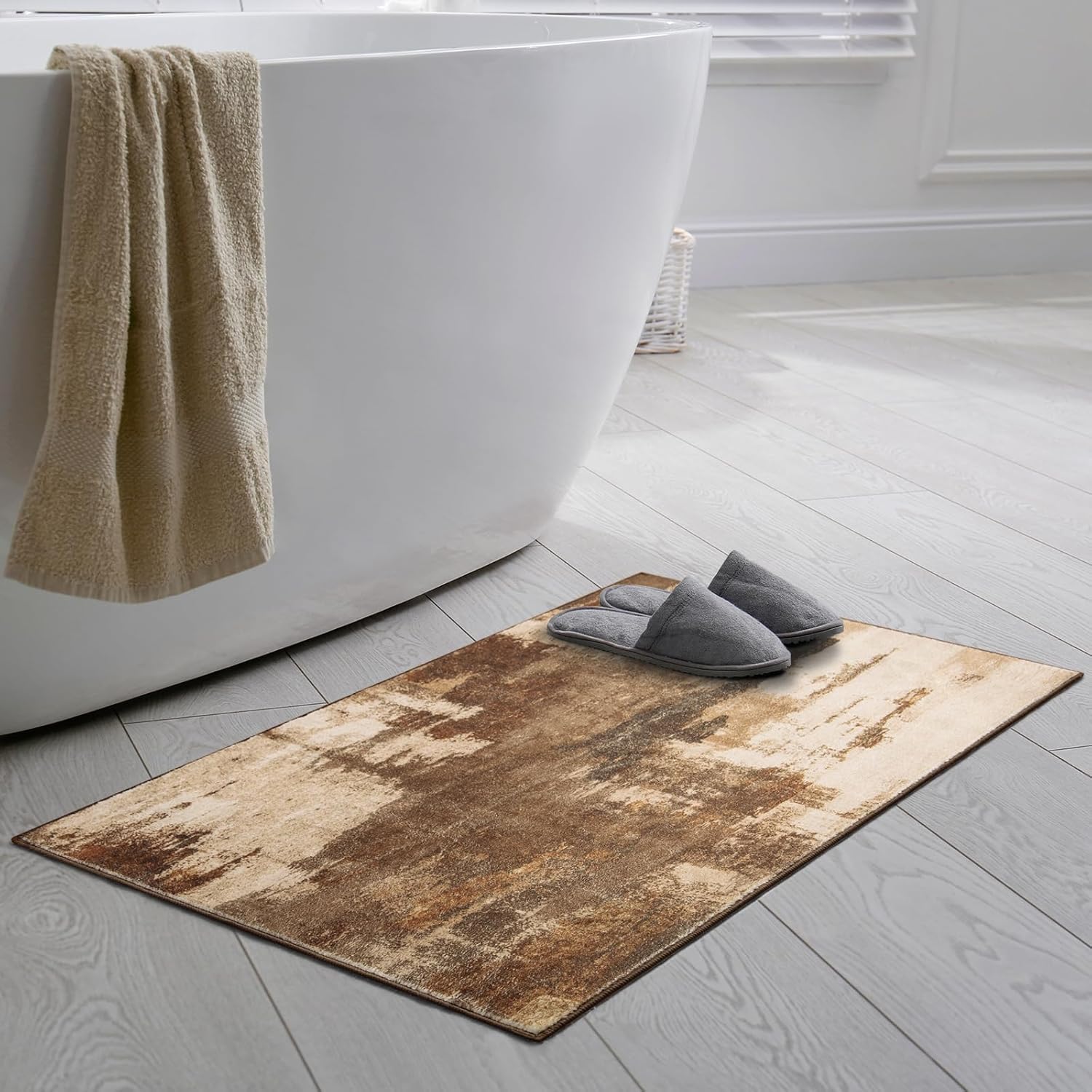 Kelarea 2x3 Brown Entryway Rug, Washable Abstract Small Rugs Non-Slip Low Pile Throw Rugs for Kitchen Floor, Front Door, Bedroom Bedside