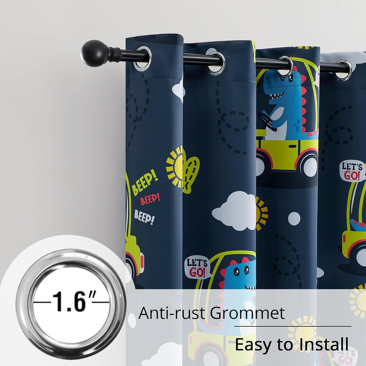 Kids Dinosaur Blackout Curtains - 2 Panels, Each W52*L84 with 100% Blackout, Thermal Insulated, and Noise Reducing, Perfect for Kids Room, Bedroom, Nursery
