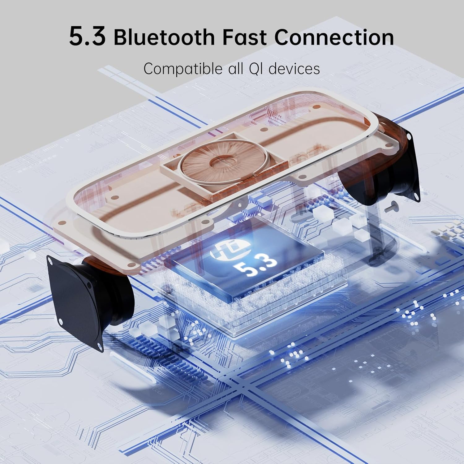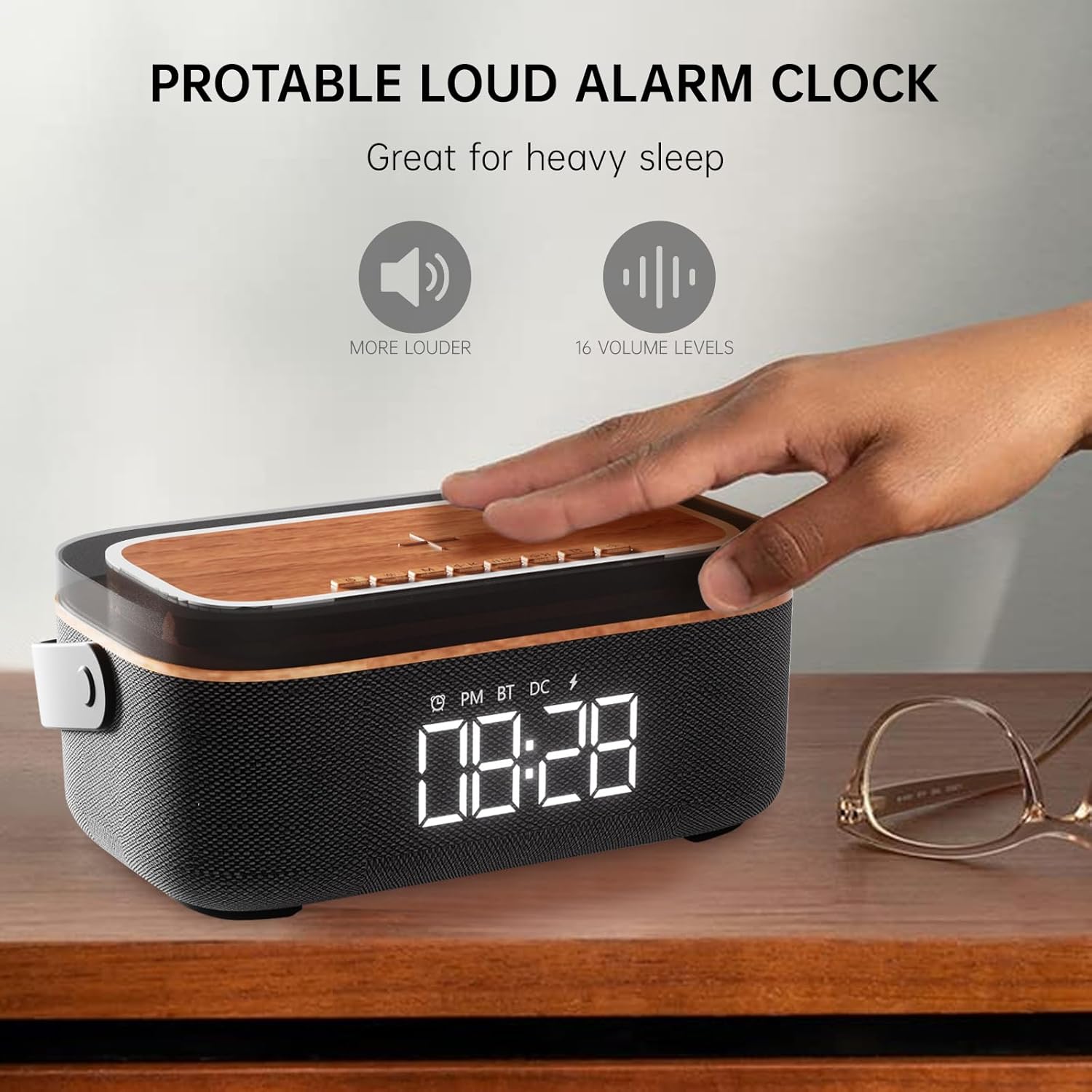 - 【Versatile Multifunctional Device】- Bluetooth speaker alarm clock with 15W fast wireless charger station, built-in 4000mAh backup battery, and 8-color night light.