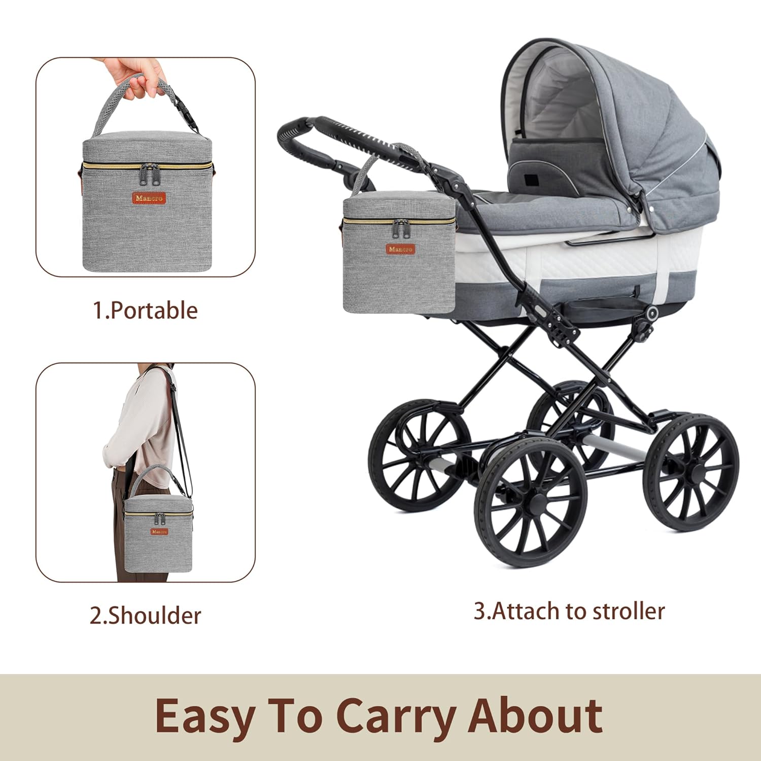 - Perfectly Portable: Designed to fit up to 4 baby bottles (9 oz each), the Mancro breastmilk cooler bag offers a compact size (7 x 6.5 x 8.5 inches), making it easy to slip into your diaper bag or carry with the adjustable shoulder strap for convenience on the go.