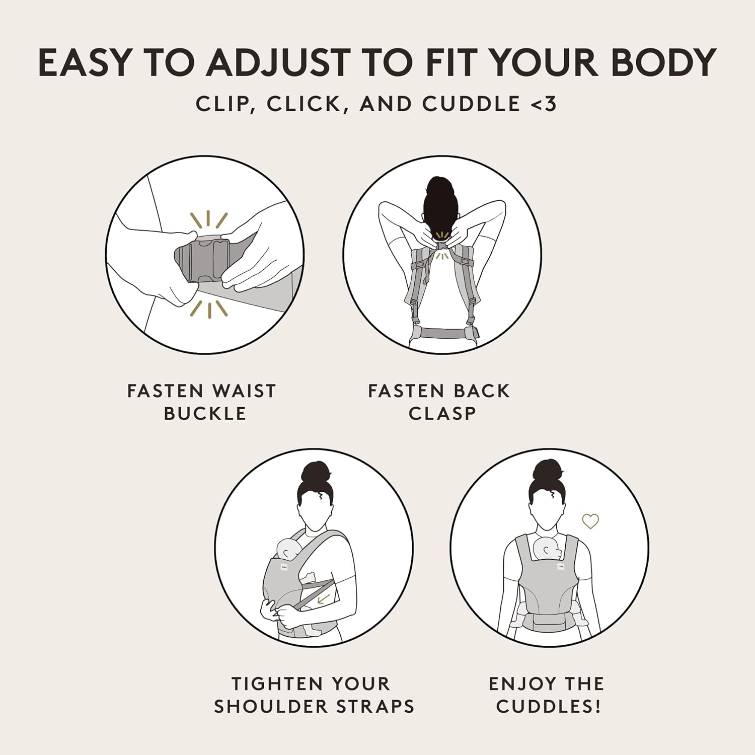 - ADJUSTABLE FOR ALL SIZES - Designed to fit caregivers from XS to 4X, this breathable baby carrier ensures a snug and supportive fit. Easily shared between parents or caregivers with simple strap adjustments.