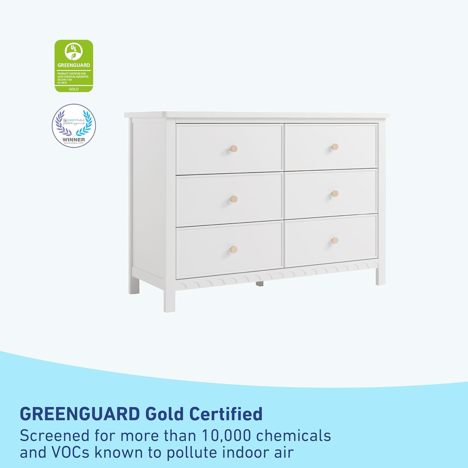 Graco Sasha 6 Drawer Dresser (White) – GREENGUARD Gold Certified, Wood Storage for Nursery or Kids’ Room, Safe Interlocking Drawer System & Easy Assembly with Pre-Installed Tracks
