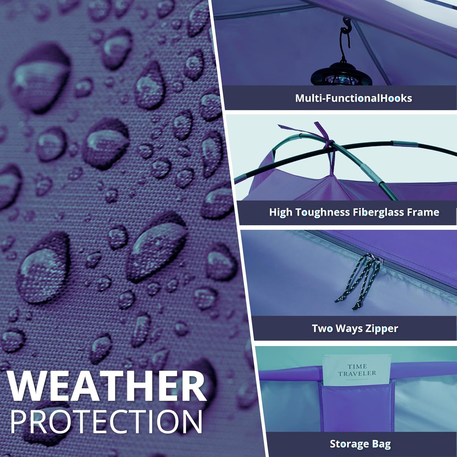- 🎒【Lightweight and Portable Design】 Weighing only 9 pounds (6-person model), it can be packed into a 47"x8" tote bag - lighter than a beach cooler! The fiberglass poles can be locked in 90 seconds, perfect for car trunks, RV trips or lakeside picnics.