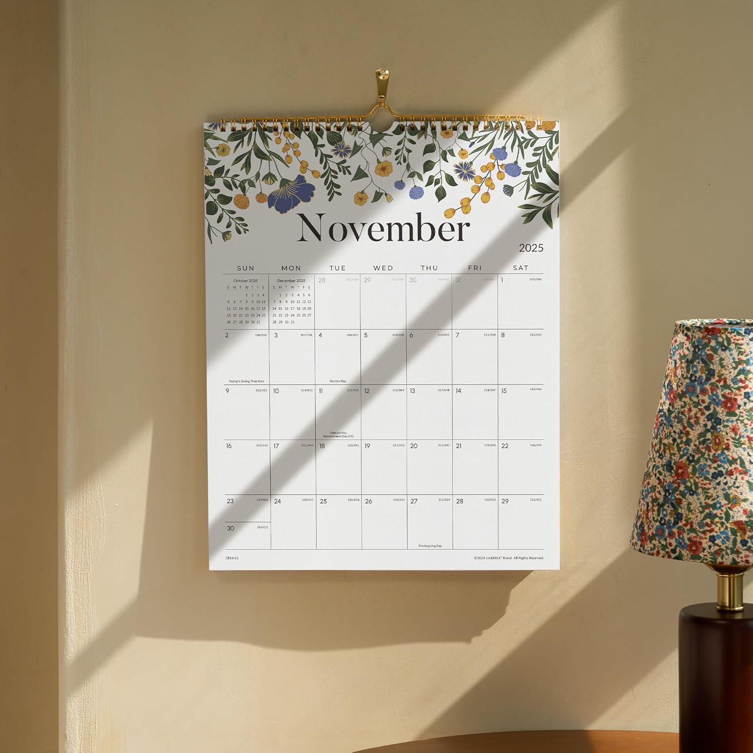 Wall Calendar 2025-2026, Floral Design Wall Calendar with Thick Paper, 18 Months Runs from July 2025 - December 2026, 12" x 15", Twin-Wire Binding, Perfect for Planning