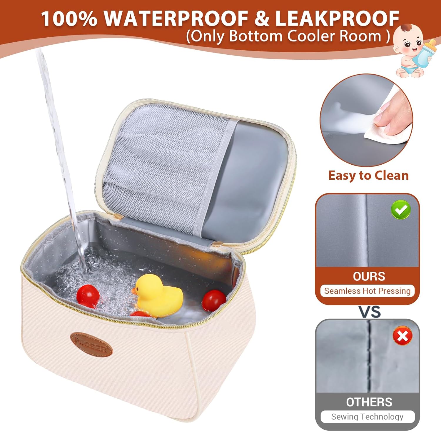 PIIOSER Breast Milk Cooler Bag with 2 Ice Pack, Fit 6 Freeze Breastmilk Storage Bags Up to 8Oz, Insulated Baby Bottles Tote Bag for Daycare and Breastfeeding Mom, Black(Cream-XS)